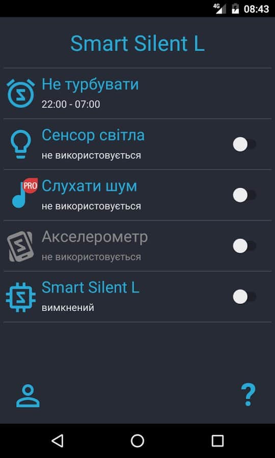 Smart Silent L - Mal sueño debido al timbre constante, mensajes y notificaciones en tu smartphone, pero no puedes apagar el sonido por si te pierdes una llamada importante? Entonces esta aplicación te ayudará, activará el modo silencio a la hora especificada, o en la aplicación que desees. Así que no serás molestado mientras duermes y cuando despiertes, te reproducirá el sonido, para que nunca te pierdas nada importante, ¡y no te duermas durante el trabajo!