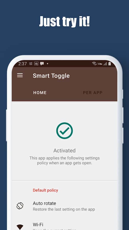 Smart Toggle - olvídate del reinicio interminable de la configuración de tu teléfono, deshazte de tales situaciones y descarga esta útil aplicación. ¡Los desarrolladores se encargaron de solucionar la revolución del smartphone, guarda los datos en las categorías de Wi-Fi, Bluetooth, configuraciones, brillo y volumen, lo que significa información masiva! Asegúrate de intentar desactivar la auto-apagado de la pantalla después de un tiempo limitado en ciertas aplicaciones. Lo indispensable siempre es útil, incluso si ahora no lo necesita.