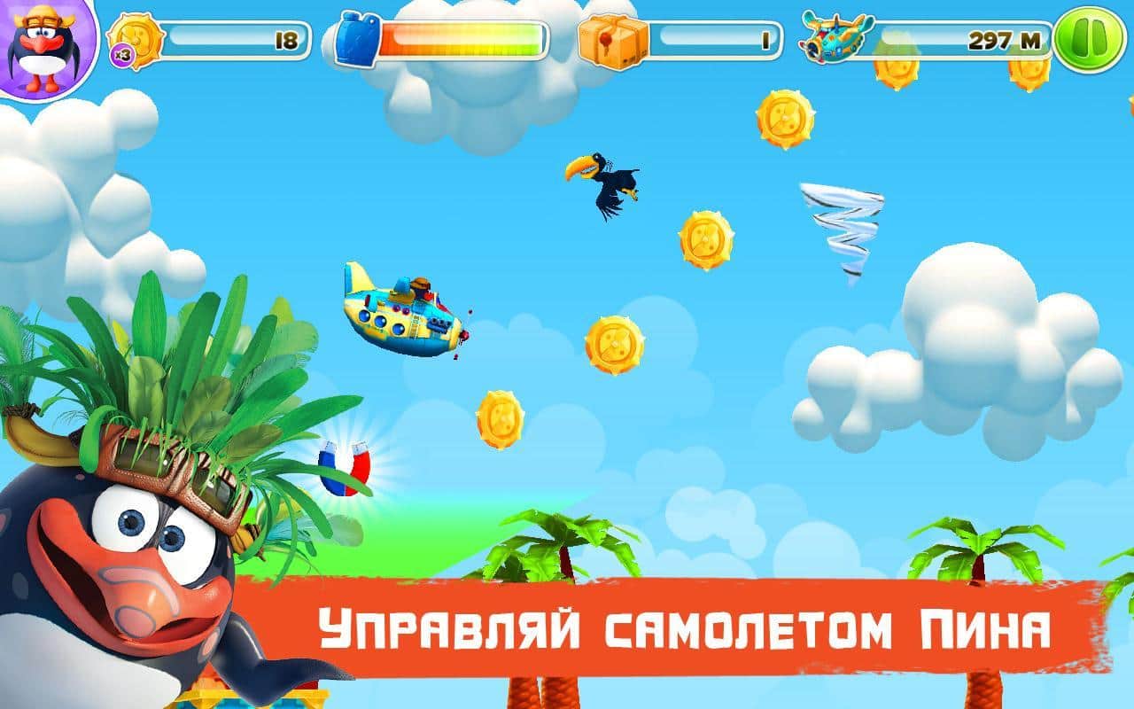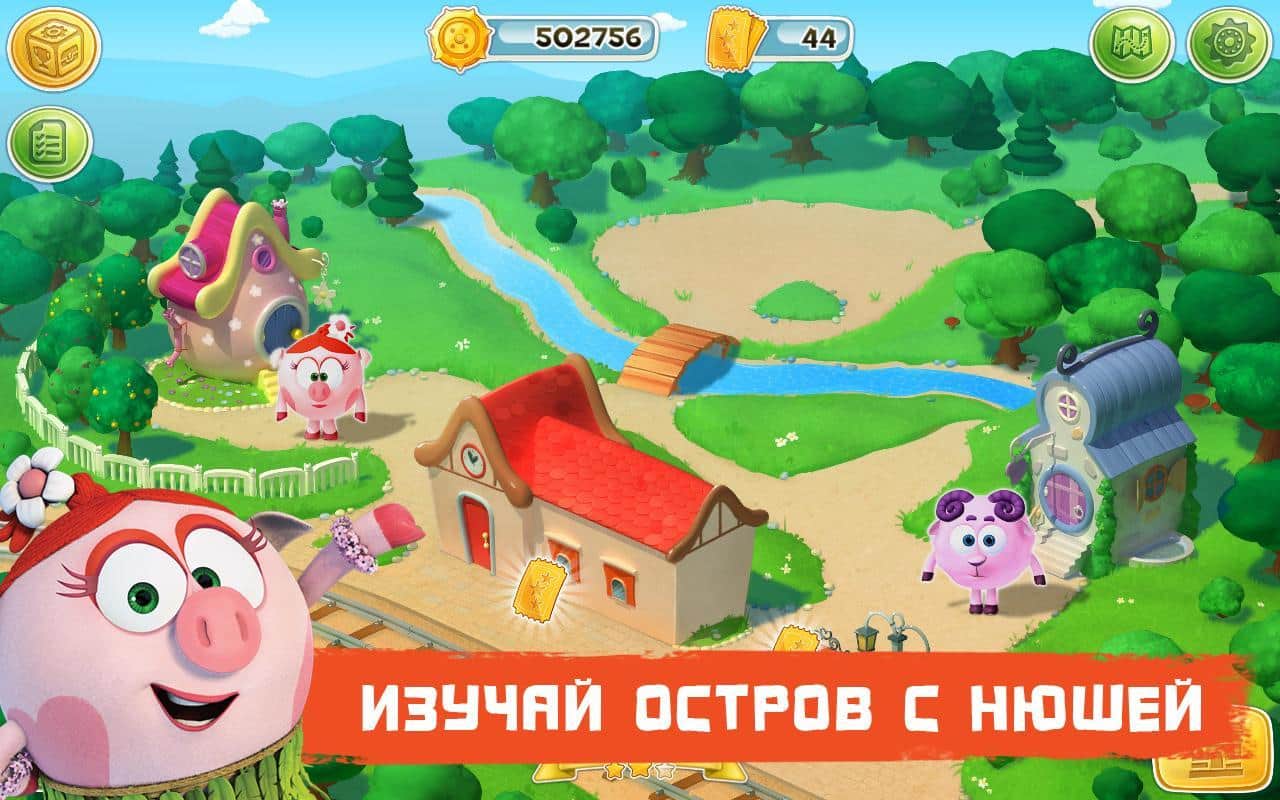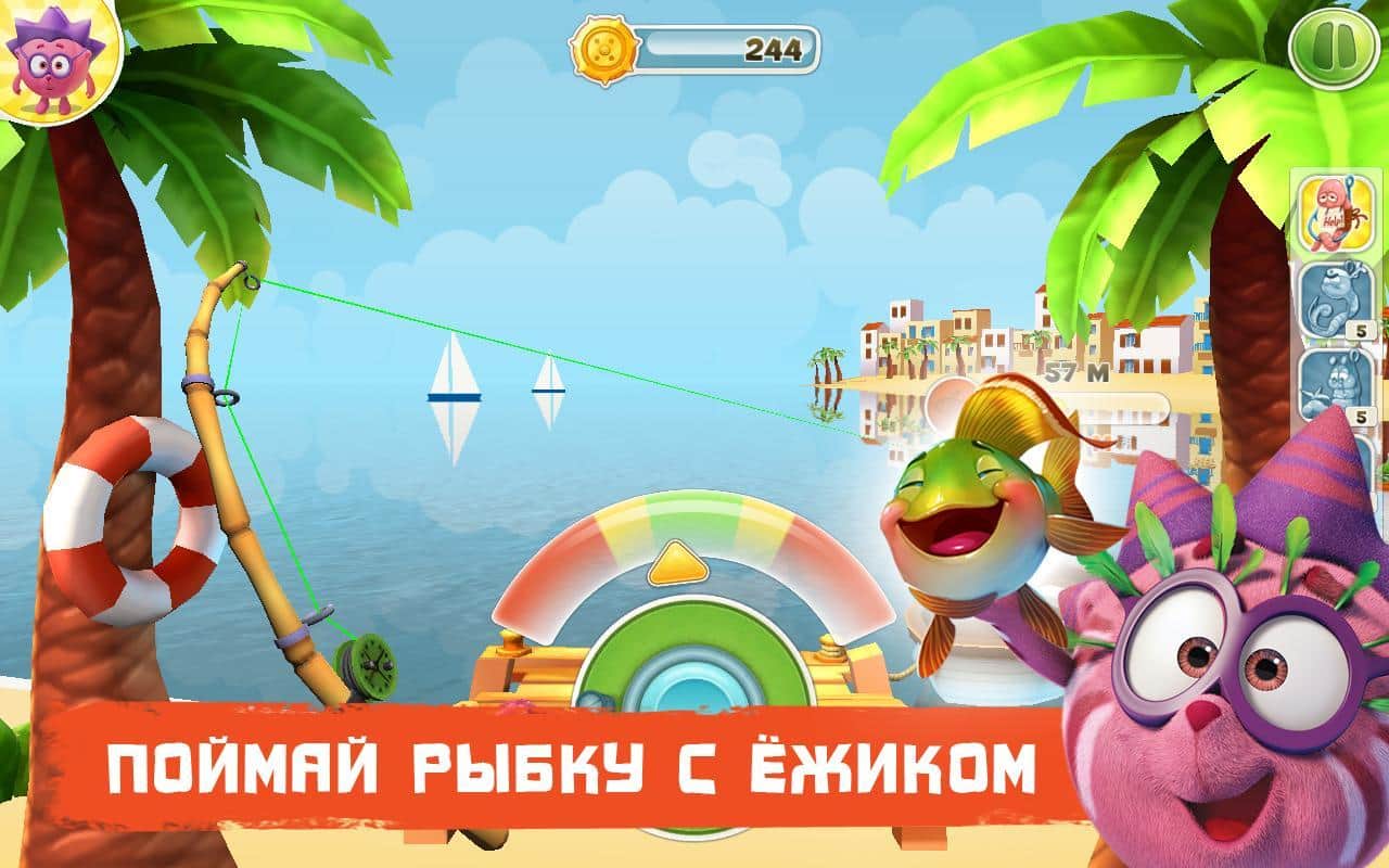 Smeshariki. Leyenda del Dragón – un arcade de aventuras en Android donde llegas a la isla, donde están los Smeshariki. En este juego te encontrarás nuevamente con tus personajes favoritos NUSOJ, Pin, Sovunya, Crumble y otros, ayúdalos a realizar diversas tareas. Controla un pequeño avión, pilotado por Pin, y ayúdalo a recoger tantas monedas como sea posible mientras evitas colisiones con cuervos y tornados. Entrega los paquetes a tiempo y recibe recompensas en forma de trofeos valiosos. Después de este trabajo, disfruta al máximo pescando en el estanque local. Colecciona todos los premios y recompensas y colócalos en la sala de trofeos.