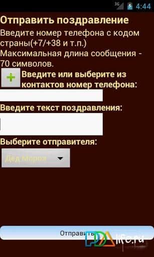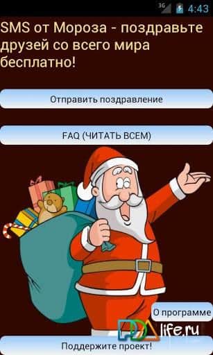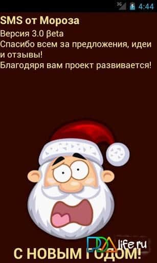 SMS en todo el mundo de Frost – ¡los milagros ocurren en Android! Continúa preparándote para el Año Nuevo, descarga e instala el programa para enviar SMS gratis en nombre de Santa Claus. Ahora tienes la oportunidad de desear a todos nuestros amigos y familiares un feliz Año Nuevo completamente gratis y sin ningún costo. El texto del mensaje contendrá no más de 70 caracteres.