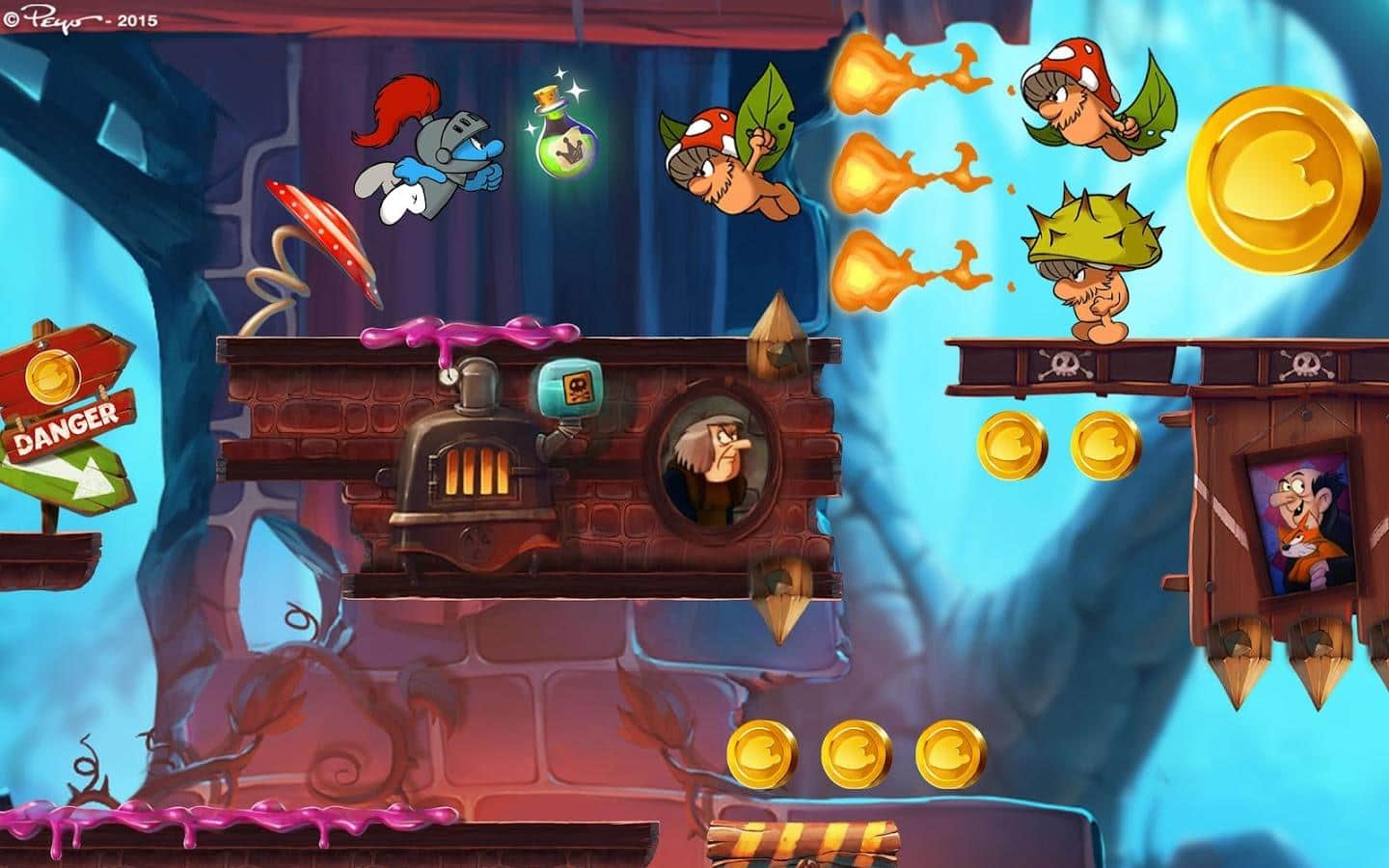 Smurfs Epic Run – el hechizo del malvado mago ha encarcelado a tus amigos. Necesitas rescatar a todos los Pitufos para escapar de Gargamel por más tiempo. Un corredor brillante y colorido, diferentes héroes y nuevos elementos hacen que este juego sea muy emocionante. Corre, salta, deslízate, esquiva los diferentes obstáculos en más de 100 niveles. El juego se inspiró en los cómics originales de los Pitufos.