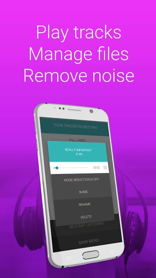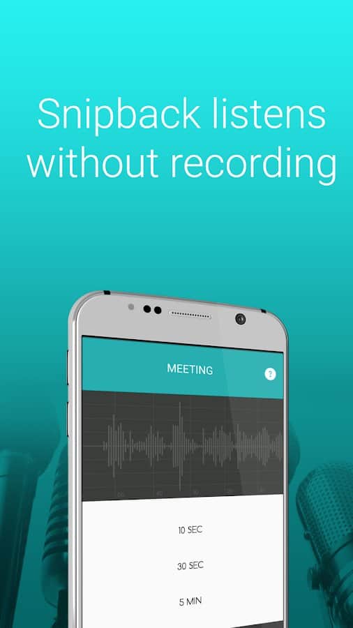 el Grabador SnipBack es ideal para aquellos que están cansados de escuchar registros voluminosos que ocupan mucho espacio en la memoria del dispositivo. Además, son difíciles de interrumpir y reproducir exactamente en el momento que necesitas. Esta aplicación ayudará a evitar tales problemas, porque tiene un tamaño de archivo pequeño, pero puedes conservar solo lo que realmente necesitas. Establece un intervalo de tiempo específico, restaura la información, guarda el segmento, utiliza el modo nocturno cuando la pantalla está apagada, usa diferentes modos de entrada para reducir los niveles de ruido de fondo, comparte archivos de audio a través de correo electrónico, redes sociales y mensajeros.
