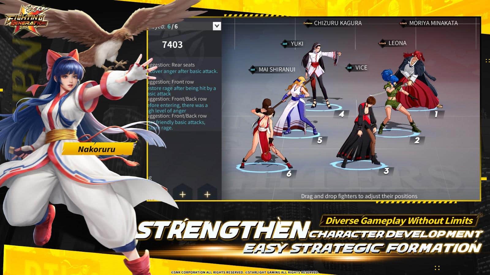 SNK: Maestros de Lucha es un juego móvil en 3D que reúne a una multitud de personajes icónicos del universo SNK. En este emocionante mundo, héroes clásicos convergen en el tiempo y el espacio para crear la alineación perfecta para batallas estratégicas. Incluso las cartas azules pueden defenderse y contraatacar a las cartas SSR, añadiendo profundidad táctica y giros inesperados. Con un estilo de renderizado en 3D reimaginado, te espera un emocionante regreso a luchadores clásicos como Mai Shiranui, Nakoruru y Ukyo Tachibana. Reúne tu equipo y participa en choques de combate en esta emocionante ciudad de batallas. El acceso a íconos de la infancia como Iori Yagami, Kyo Kusanagi y Haohmaru está abierto para ti.