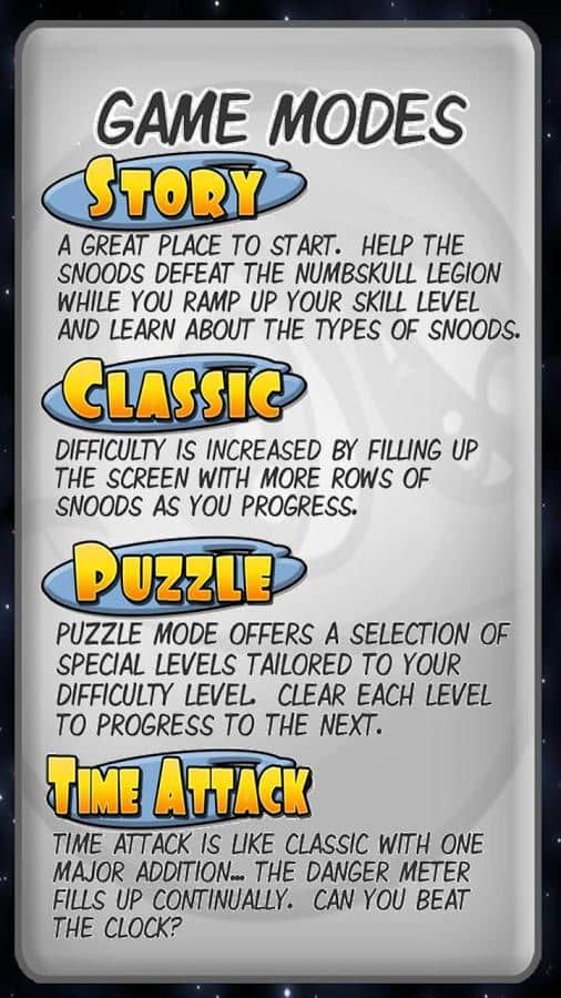 Juego de rompecabezas Snood para Android donde tu tarea será crear una serie de caras divertidas. Toca la pantalla de tu teléfono o tableta en el momento adecuado y lanza el hocico al vuelo, formando tres objetos del mismo color en fila. Tan pronto como los tres objetos estén en el rango, desaparecen y obtienes puntos. Entrena tu excelente respuesta y rapidez y dispara los hocicos en el lugar correcto. Explora todos los modos de juego y asciende lo más alto posible en la tabla de clasificación y logros.