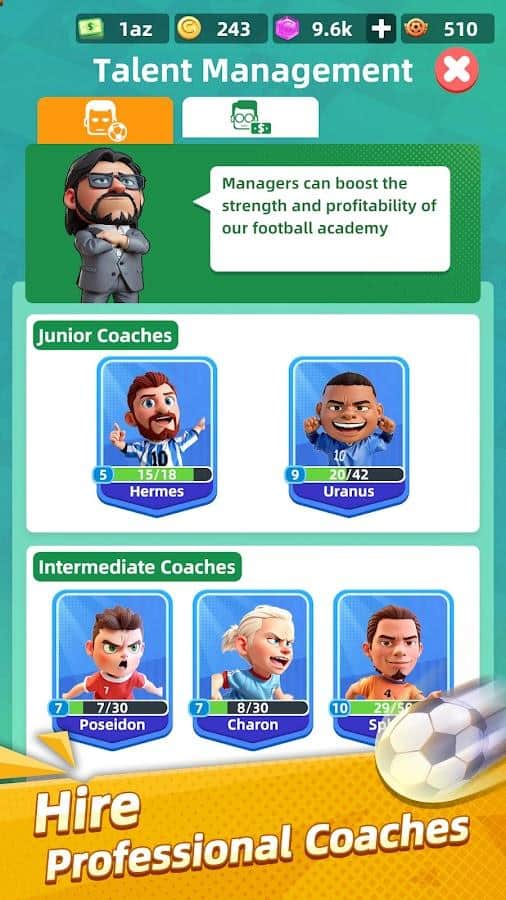 Abre las puertas al emocionante mundo del fútbol con Football Empire - El Sueño Comienza - un lugar donde los jóvenes pueden dominar el arte del juego más popular del mundo, convirtiendo su pasión en éxito profesional. El juego no es solo un campo de entrenamiento, es la cuna de una nueva generación de futbolistas que inspirarán a millones y dejarán su huella en la historia del deporte. Con tu cuidado y gestión estratégica, cada joven talento podrá liberar su potencial y convertir su sueño futbolístico en realidad. Tus responsabilidades como director serán: