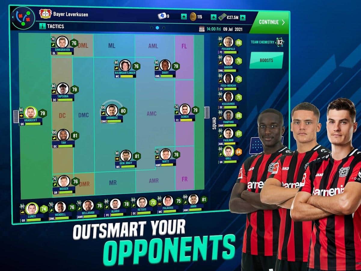 Soccer Manager 2022 - fútbol con licencia FIFPRO™ - ¡Un equipo de fútbol no puede ser invencible y popular sin un líder fuerte! Pasa tu tiempo libre en el campo de fútbol: planifica sesiones de entrenamiento regulares, elige a los mejores jugadores para el equipo, asigna números únicos a todos los miembros del club y distribuye tareas estratégicas entre ellos. Tienes la oportunidad de cuidar de la prosperidad del equipo, recogiendo así diversas recompensas, copas, trofeos, contribuciones en efectivo y más con ellos. ¡Tus decisiones afectan a los aficionados y a otros equipos!