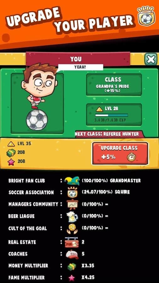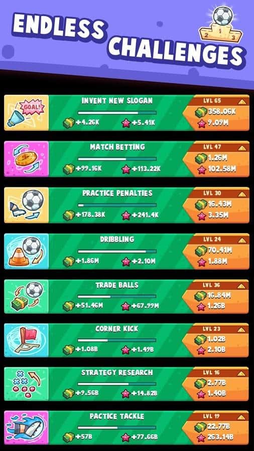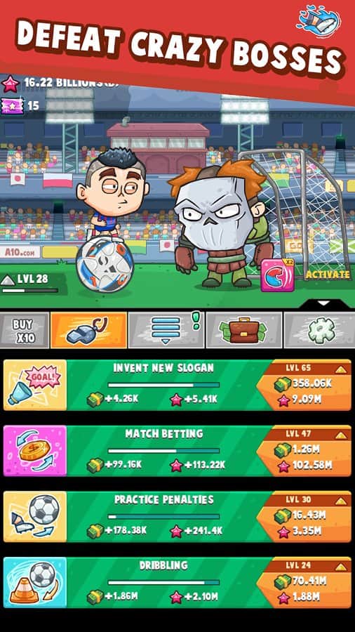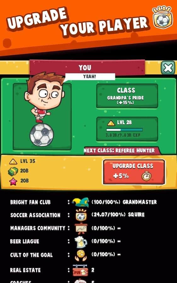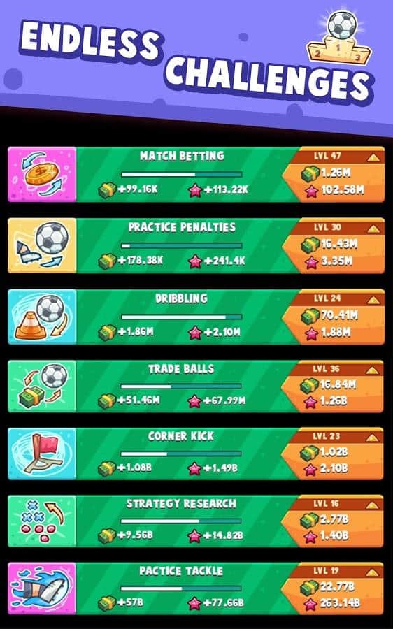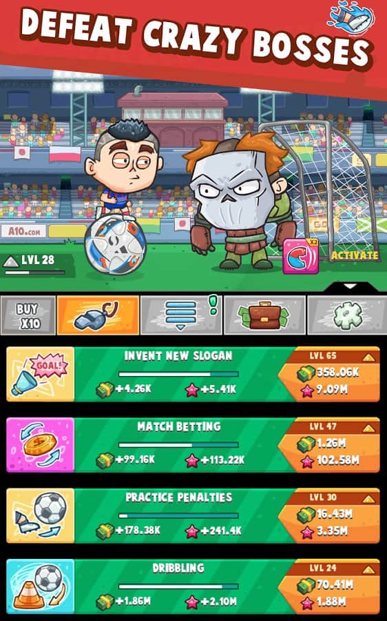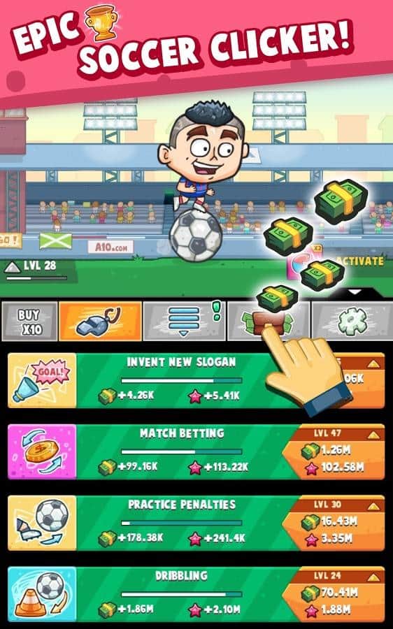 Simulador de Fútbol - Este juego realmente muestra su nombre. Y aunque el título tiene la palabra simulador, sigue siendo un juego en el que te convertirás en un gran jugador. Acumula tanto dinero como sea posible, recibiendo los aplausos de los aficionados y mejorando los diversos aspectos que generan ingresos. En cierto sentido, ciertamente es un simulador, porque todas las mejoras crean una situación diferente en el campo de fútbol, como un córner o un penalti. Gana más dinero, mejora el nivel de tu personaje y conviértete en un famoso jugador de fútbol.