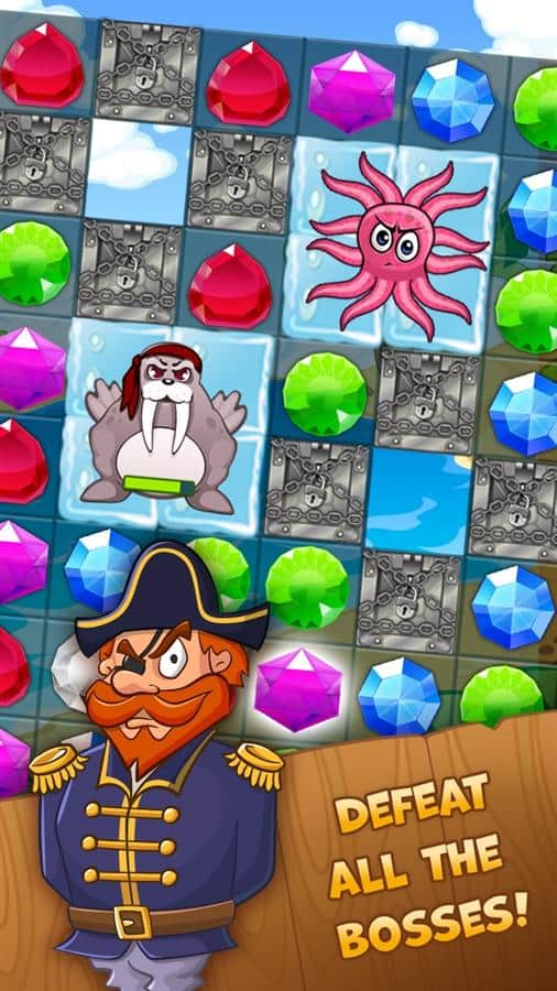 Los tesoros de los piratas – un juego del género "tres en raya" donde tendrás que encontrar verdaderos tesoros. Embárcate en un emocionante viaje a través de diversas ciudades y mares y descubre tesoros escondidos para convertirte en el pirata más famoso. Forma filas de tres o más cristales iguales y retíralos del campo, obteniendo bonificaciones y puntos adicionales. Juega a este juego y disfruta al máximo de los niveles fascinantes y las interesantes misiones. Comienza tu aventura ahora mismo y acumula suficientes puntos para convertirte en el pirata más famoso y reconocible.