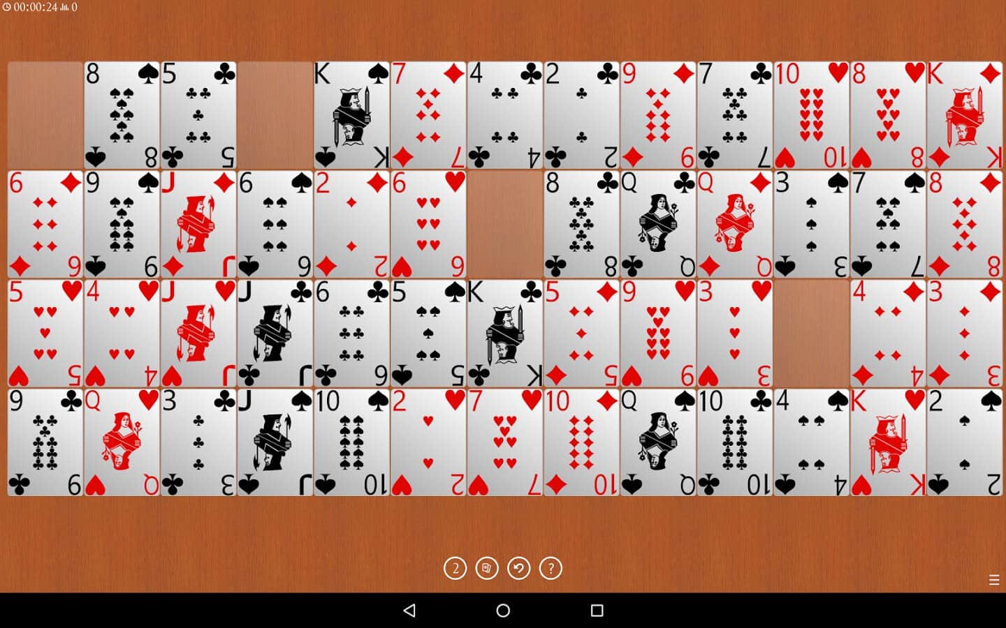 La Colección de Solitarios es un excelente juego de solitario en Android, que ha recopilado en sí mismo muchas variedades de juegos de cartas. En este juego encontrarás juegos como: Klondike, Freecell, Golf, Klondike, Spider, Canfield, Yukon, Castillo, Pirámide y otros juegos menos conocidos. El juego te ofrecerá varias opciones donde podrás cambiar la imagen de fondo en el juego, la parte trasera y las cartas con imágenes. Selecciona una forma aleatoria o estándar para elegir un solitario y logra resultados increíbles, rastreando estadísticas para cada solitario. El juego también proporciona deshacer movimientos ilimitados y la capacidad de vencer el juego.