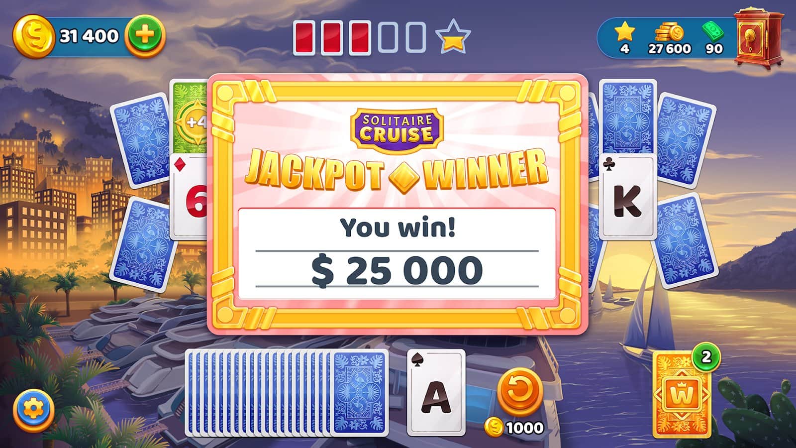 Cruise Solitaire: ¡Solitario Freecell! Juego de cartas: los juegos de cartas clásicos siempre serán populares y nunca te aburrirás, podrás jugar al solitario y disfrutar de los hermosos gráficos y la capacidad de demostrar tu habilidad intelectual. Desarrolla la lógica, sé inteligente y supera docenas de niveles emocionantes, colecciona rompecabezas y explora, gira la rueda y gana increíbles bonificaciones. Colecciona experiencia de estrellas, asciende en el ranking, gana y participa en torneos.
