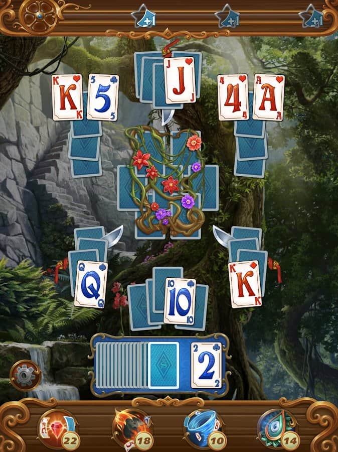Solitario Historia Mágica Aventura Offline Cartas – juego clásico de solitario de cartas en Android, donde te transportas a un mundo maravilloso y mágico. En este juego podrás jugar al solitario en la mesa de la taberna, a la luz del fuego, a la sombra del roble o al sonido de una magnífica cascada. Un hada amiga te ayudará en tu viaje a través de un mundo lleno de secretos y misterios. Supera numerosas pruebas y desafíos de jugadores experimentados. Recluta la ayuda de las hadas en situaciones desafiantes, disfruta de la agradable atmósfera del juego. Este juego es perfecto para jugadores de cualquier edad.