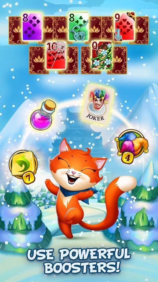 Tour Mágico de Solitario: Aventura de Rompecabezas Tripeaks - juego de cartas del famoso desarrollador G5 Entertainment. Esta vez estarás en compañía de alegres pícaros chantarelas para embarcarte en un emocionante viaje a través de cinco mundos diferentes, incluyendo una visita al valle de la Esfinge, a visitar Atlantis e incluso en el fantástico refugio Celestial. La mecánica del juego combina elementos de juegos de aventura y el clásico juego de cartas y a su vez el juego se divide en más de 250 niveles. Gráficos coloridos y completo soporte para el idioma ruso complementan perfectamente la imagen general.