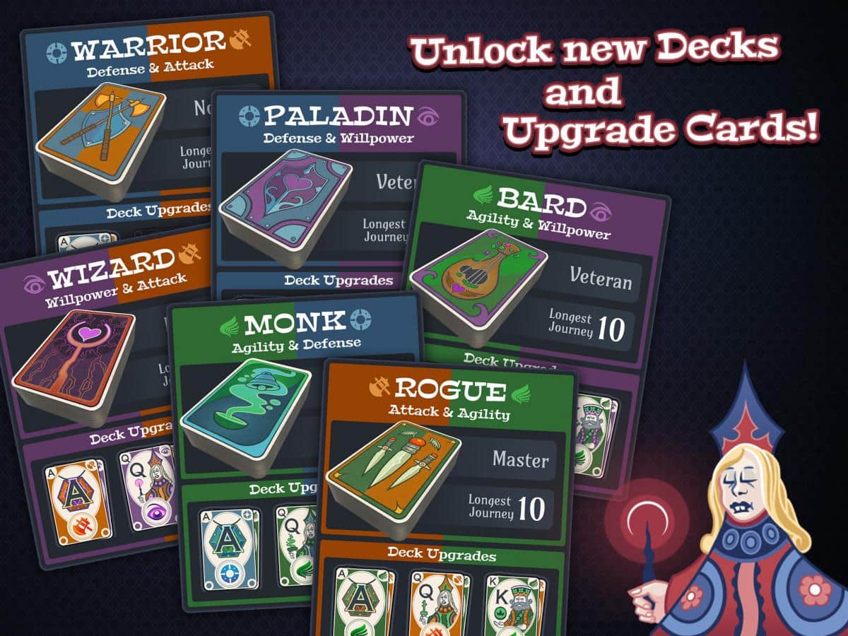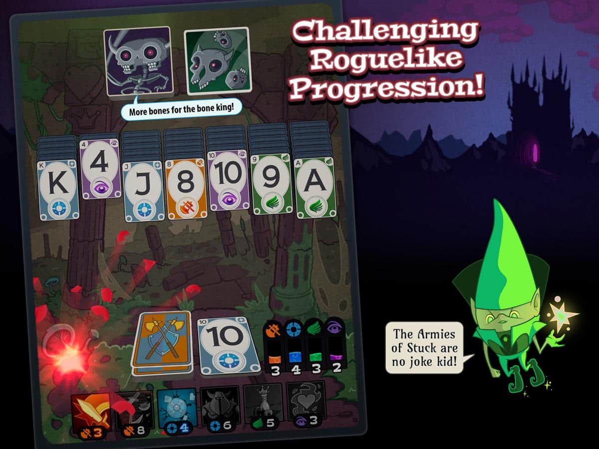 Solitairica – gran juego de cartas para IOS con elementos de RPG. En este juego te encontrarás en un Reino asediado por fuerzas oscuras y solo tú puedes detenerlas. Reúne tu mazo invencible de cartas y defiéndete de los enemigos, tomando sus cartas. Cada carta en este juego se refiere a sus elementos y con su poder podremos usar magia y hechizos. Desarrolla tu táctica de juego y trata de seleccionar todas las cartas del oponente, ganando así dinero que puedes gastar en la compra de nuevos hechizos. En este juego encontrarás muchos oponentes diferentes, diferentes hechizos y mapas. Ve al modo de entrenamiento y familiarízate con todas las reglas.
