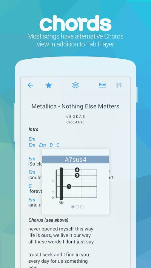 Songsterr – una aplicación genial para tu dispositivo Android de Songsterr, que deleitará tanto a los guitarristas/bateristas principiantes, como a los músicos experimentados con una rica base de pestañas (400,000) para guitarra acústica, guitarra de bajo y batería. Descarga, instala, aprende melodías de tus películas o juegos favoritos, la nueva capacidad de regalar a tus amigos y seres queridos.