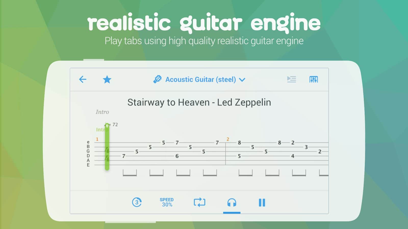 - La reproducción de pestañas utiliza un motor de guitarra de alta calidad.