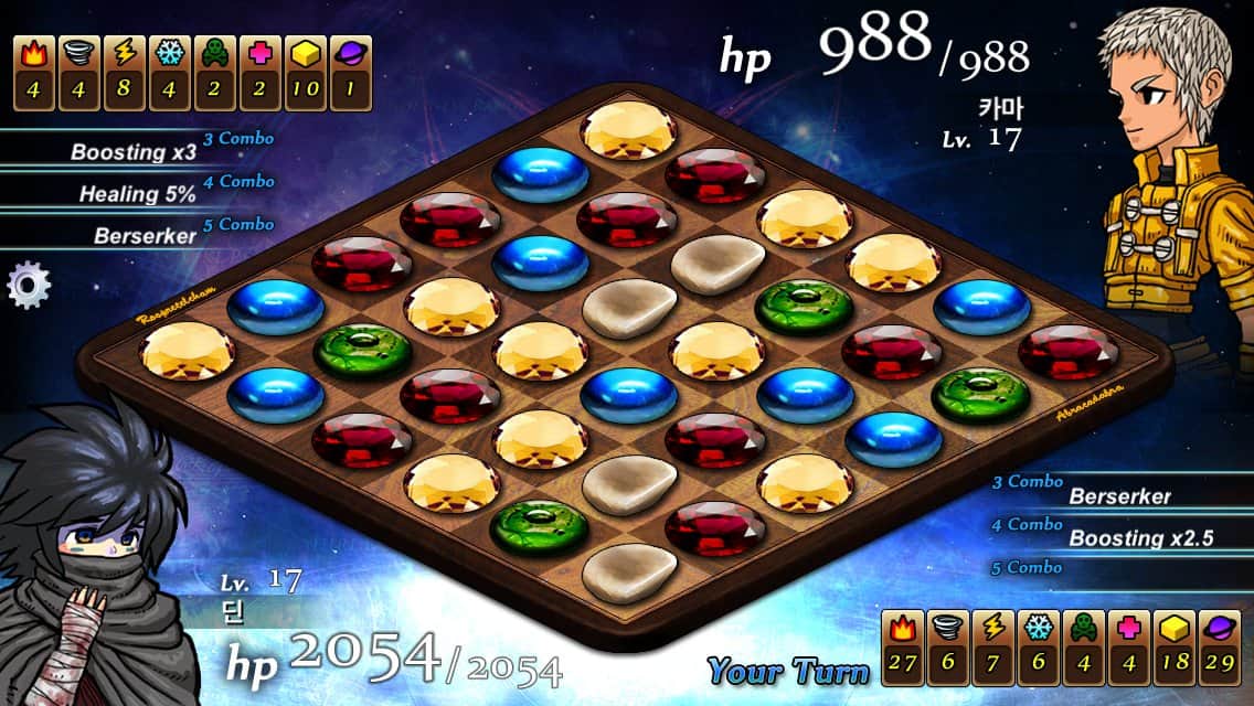 La Hechicera de la Fortuna es un juego de rompecabezas para Android con elementos de combate estratégico. Tienes que luchar como un hechicero por lo mejor. Cada uno de los personajes es capaz de usar 8 habilidades diferentes como: fuego, hielo, viento, relámpago, veneno, curación, terremoto y lluvia de meteoritos, que te ayudarán en el juego. Utiliza tus poderosas habilidades para hacer combos y recolectar la mayor cantidad de recompensas y puntos.