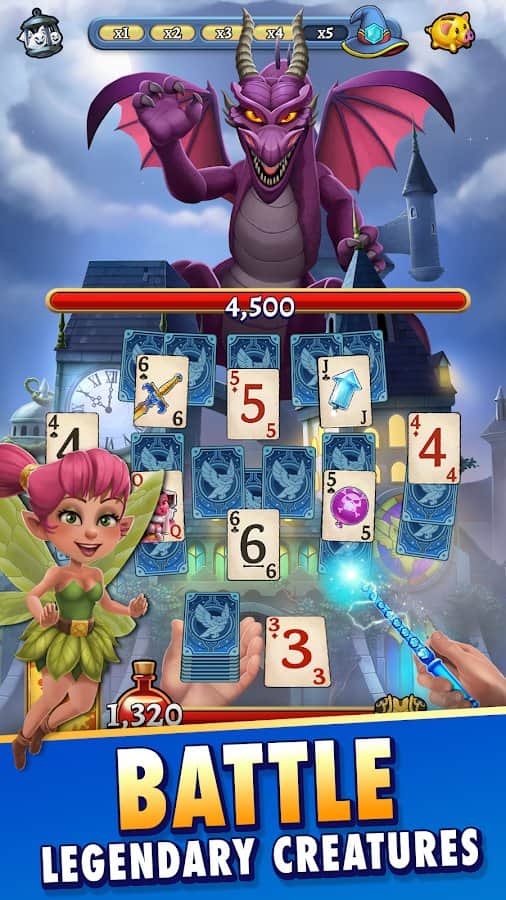 Sumérgete en el mundo mágico de la Escuela de Hechicería, donde encontrarás una emocionante combinación del clásico solitario TriPeaks y una cautivadora aventura RPG. Este encantador juego, disponible tanto en línea como fuera de línea, te permitirá embarcarte en un viaje inolvidable como un joven mago. Fuerzas oscuras han atacado la Escuela de Hechicería, encantando a sus habitantes y capturando a estudiantes y profesores. Tu misión es liberar la escuela del mal dominando varios tipos de magia a través de un emocionante juego de solitario. Junto a héroes legendarios como Horatio Hawthorn y Cyrus Silvertongue, tendrás que confrontar al siniestro Señor Oscuro. Participa en duelos mágicos y combate monstruos utilizando tus habilidades de solitario. Personajes diversos con talentos mágicos únicos harán que cada juego sea único.