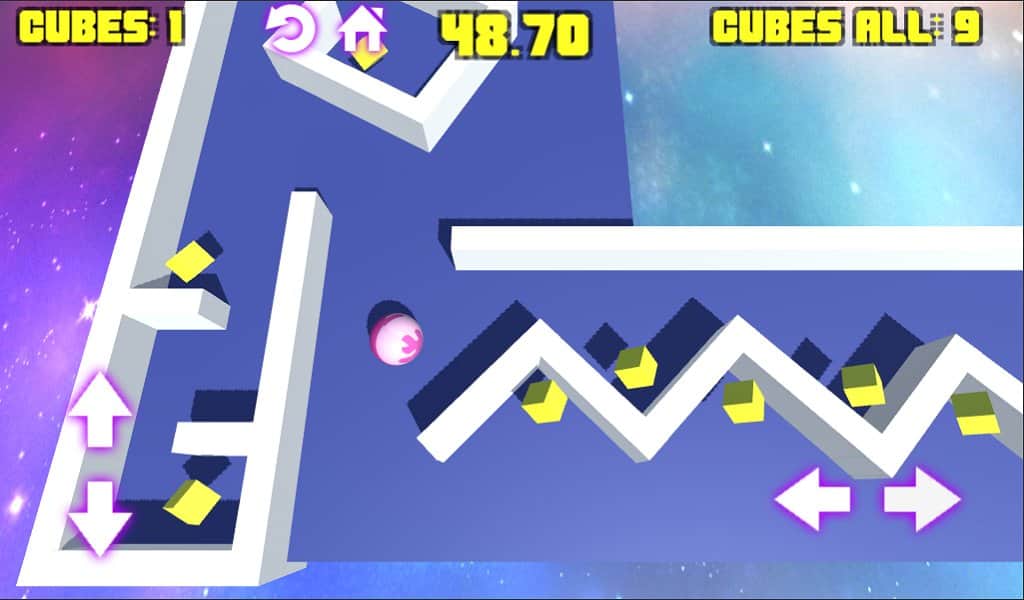 Space Ball – un fascinante arcade en Android donde moverás una bola a través del espacio. Toma el control de la bola inclinando tu teléfono o usando los botones en la pantalla para mover la bola por el espacio. Cada nuevo nivel te deleitará con una variedad de misiones y tareas, encuentra la forma de abordar cada una de ellas. En el camino de la bola recoge polvo espacial, lo que te permitirá acceder a nuevos planetas. En tu camino encontrarás asteroides voladores, plataformas que caen y se mueven, así como el espacio abierto.
