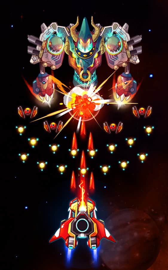 Cazador Espacial: La Venganza de los Alienígenas en la Galaxia – un shooter de desplazamiento para Android donde defiendes el planeta Tierra de la invasión alienígena. Durante muchos años, el Escudo de Fuerza protegió la Tierra de la penetración de alienígenas en su órbita, pero ocurrió lo irreparable y el escudo dejó de cumplir su misión. Los alienígenas comenzaron a romper el escudo y atacar todos los objetos en movimiento. En el cuartel general, la escuadra Infinity, con naves espaciales especiales, decidió enviar todos sus barcos para destruir la nave nodriza de los alienígenas. Controla una nave espacial y destruye aviones y cazas enemigos infinitos y prepárate para la batalla con los jefes.