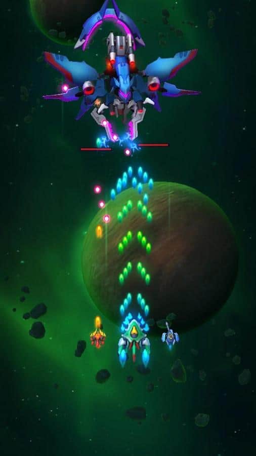Justicia Espacial - clásico shooter vertical - en el estilo del espacio, la historia se desarrolla en el siglo 23, durante la época en que nuestra galaxia estaba bajo amenaza de destrucción por invasores desconocidos, pero había valientes pilotos capaces de detener el ataque. Juegas el papel de comandante de un transbordador de combate, así que sé valiente detrás del volante y ve a salvar la galaxia. La jugabilidad se presenta en el estilo habitual, pero el diseño gráfico cumple con todos los requisitos modernos.