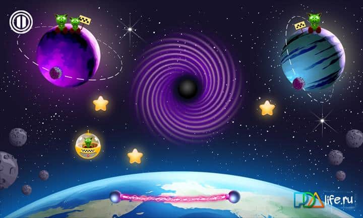 Taxi Espacial - juega como un conductor de taxi en el espacio exterior. Como cualquier conductor de taxi, tu objetivo es ganar la mayor cantidad de puntos posible, obteniéndolos naturalmente por el transporte de pasajeros y recolectando estrellas en tu camino. Si el nivel se completa a la perfección, ganarás hasta 500 puntos. ¡Ten cuidado, en el espacio las anomalías aparecen justo frente a tu nariz! Diviértete y entretente con el juego Taxi Espacial.