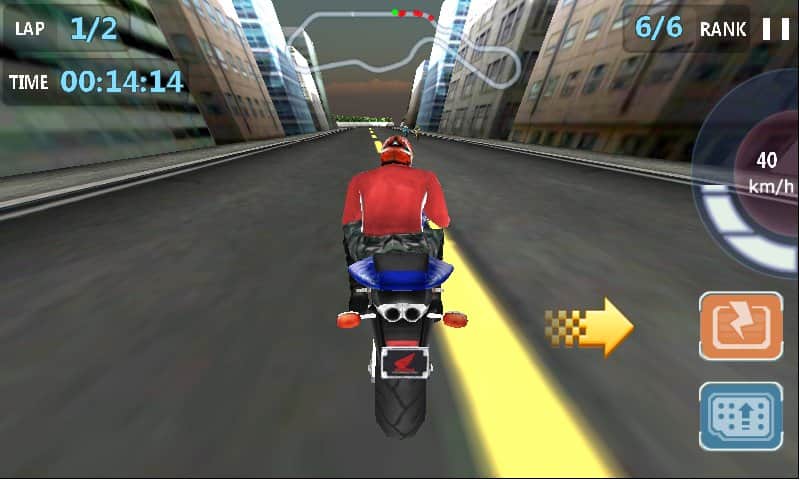 Juego Speed City Moto en Android, en el que puedes conducir una moto en la ciudad. La velocidad, el rugido del motor y buenos gráficos, satisfarán a los corredores ávidos. Al adelantar a los rivales, corres el riesgo de caer en la vista de la policía y llegar a la meta último.