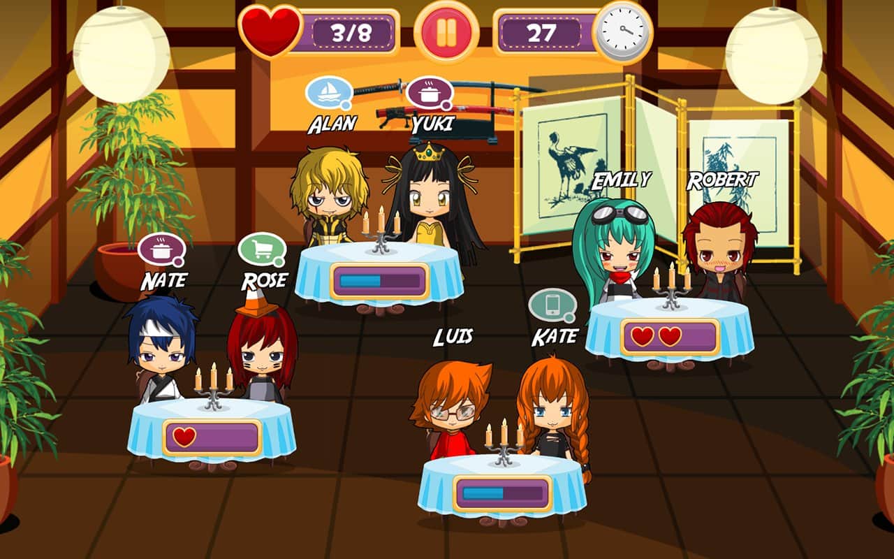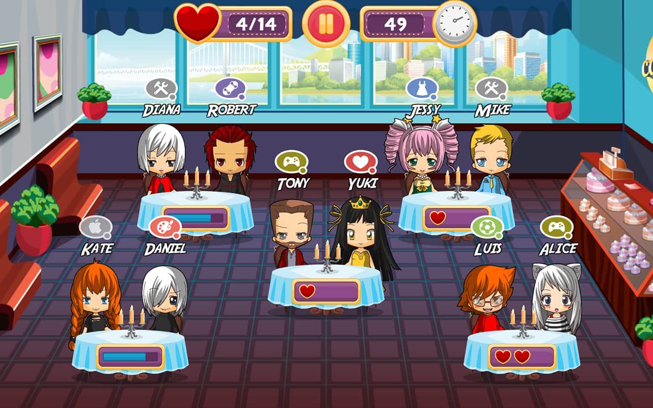 Las citas rápidas son un juego divertido para niños y adultos en el que ayudarán a los héroes del juego a encontrar su alma gemela en una cita rápida. Este juego está diseñado para asegurar que nuestros héroes encuentren una pareja. Mueve a los personajes, transplantándolos a diferentes mesas para que encuentren un compañero en sus aficiones. Esto te ayudará a entender qué motiva a un personaje en particular a través de una nube que aparece sobre sus cabezas. Mezcla y combina a tus héroes y reúne suficientes puntos para pasar al siguiente nivel. El juego tiene varios modos de juego, cada modo tiene sus propias características individuales, como recoger una pareja por un corto tiempo, por un cierto número de movimientos y también recordar quién estaba sentado con quién en su asiento.