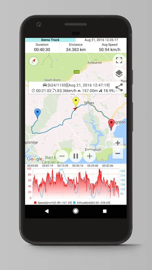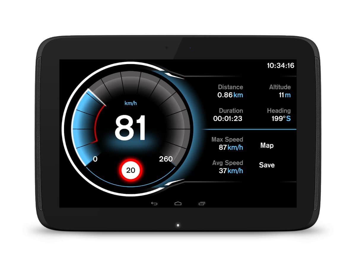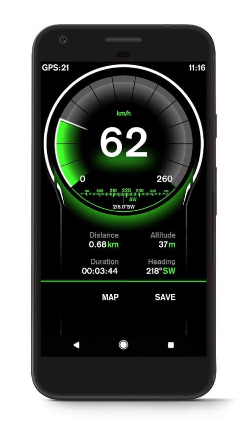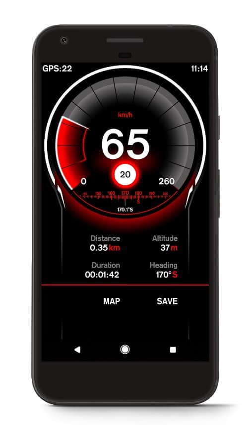 usando la aplicación Speed View GPS Pro no solo se puede monitorear la velocidad, el tiempo y la distancia del movimiento, sino también calcular los valores promedio y máximos de estos parámetros, así como la altura sobre el nivel del mar. Guarda configuraciones y la pista actual mostrando la ubicación del objeto. El velocímetro integrado para coches y el ciclocomputador para bicicletas tienen la capacidad de cambiar rápidamente de un valor a otro. Unidades de medida - millas, nudos y kilómetros. Integra el mapa y accede instantáneamente a tu ubicación, elige un estilo de color único de los 16 disponibles, cambia el diseño y la orientación de la pantalla.