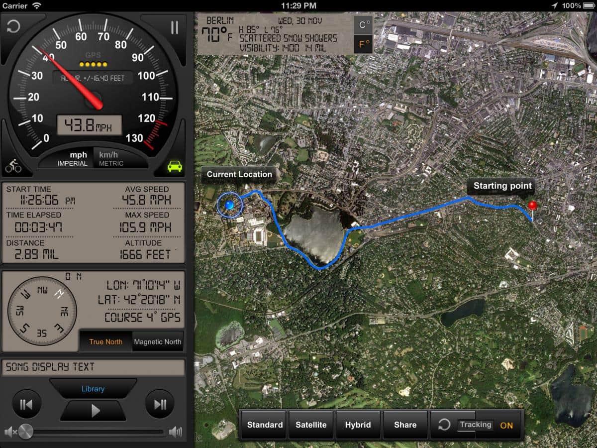 En el coche está bien: todos los datos necesarios siempre a la vista. ¿Y qué hacer con los ciclistas que también quieren esa comodidad? Por ejemplo, instalar esta aplicación. Permite rastrear la velocidad a la que te mueves, recopila estadísticas sobre el punto de inicio y fin de la ruta, la velocidad media y máxima, la distancia, así como gestionar el reproductor rápidamente. Para una salida de información más conveniente, se utilizan varios tipos de mapas a elección del usuario, se prevé un sistema métrico, y cuenta con una brújula incorporada.