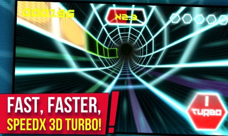 SpeedX 3D Turbo – carreras dinámicas en Android, en el increíble mundo de SpeedX - lleno de obstáculos y enormes velocidades. En este juego, te deslizarás a gran velocidad por un túnel, esquivando obstáculos y recogiendo escudos. El juego te impresionará con su grafismo y no dejará indiferentes a los amantes de la música dinámica, ya que en este juego hay una música increíble que es mejor escuchar con auriculares. Activa el modo turbo en este juego y prueba tu reacción y resistencia, llegando lo más lejos posible, rompiendo todos los récords en el juego y estableciendo los tuyos. Simplemente toca la pantalla de tu teléfono y comienza tu juego ahora mismo.