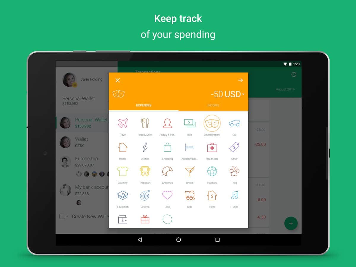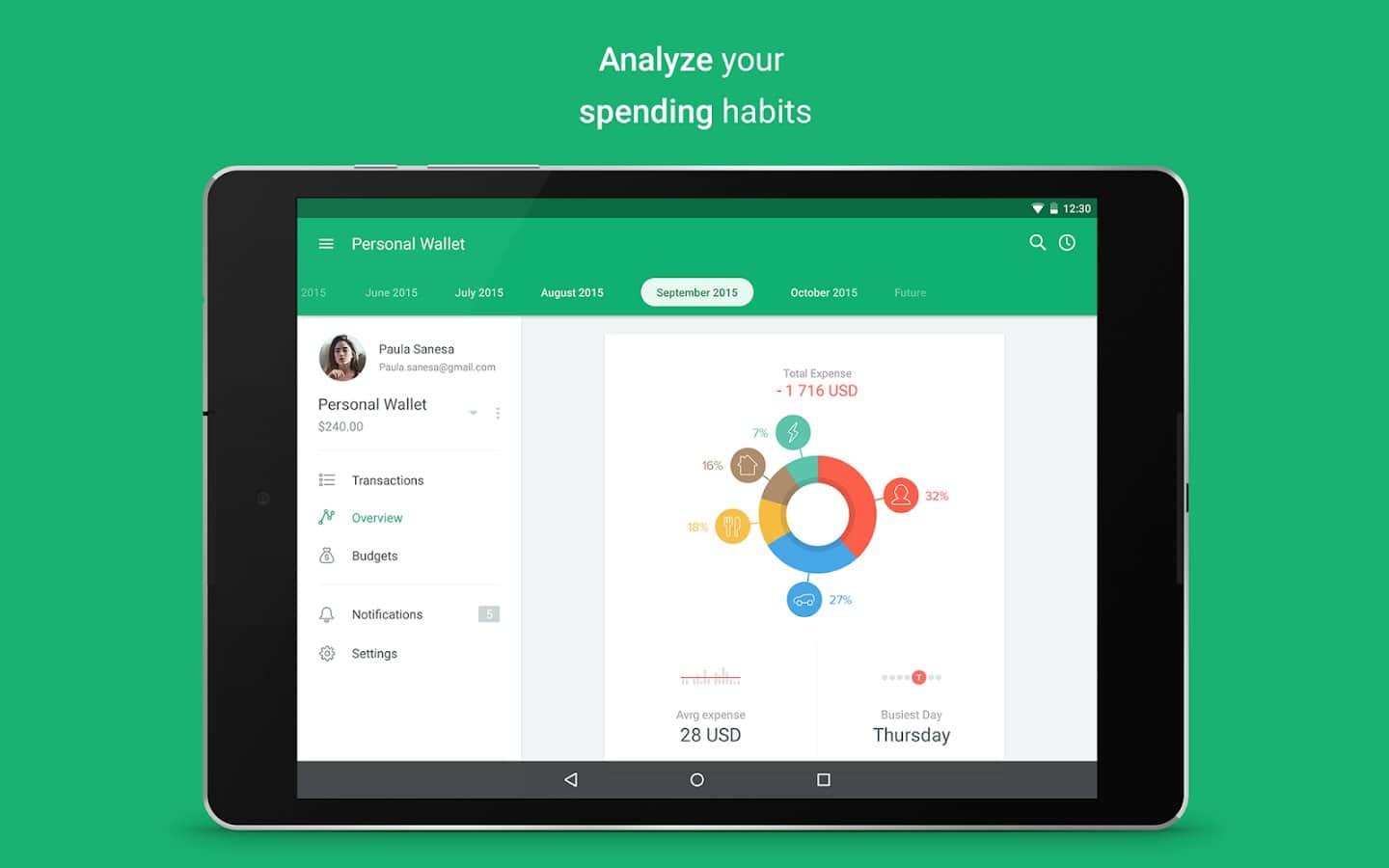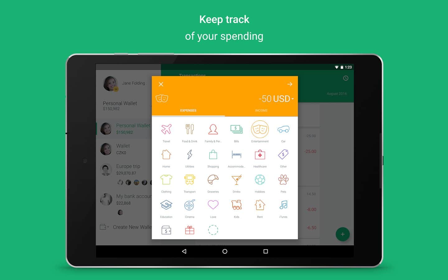 Spendee - Constantemente tira dinero al viento, y nada puede detenerlo, luego solo controla tus gastos con esta aplicación simple y colorida. Puedes registrar aquí tus ingresos, y luego restarlos de todos los gastos, además de mostrar todo esto puede cambiar y hacerlo en forma de gráfico, dividiendo así todo el gráfico en secciones con sus íconos para una mejor percepción.