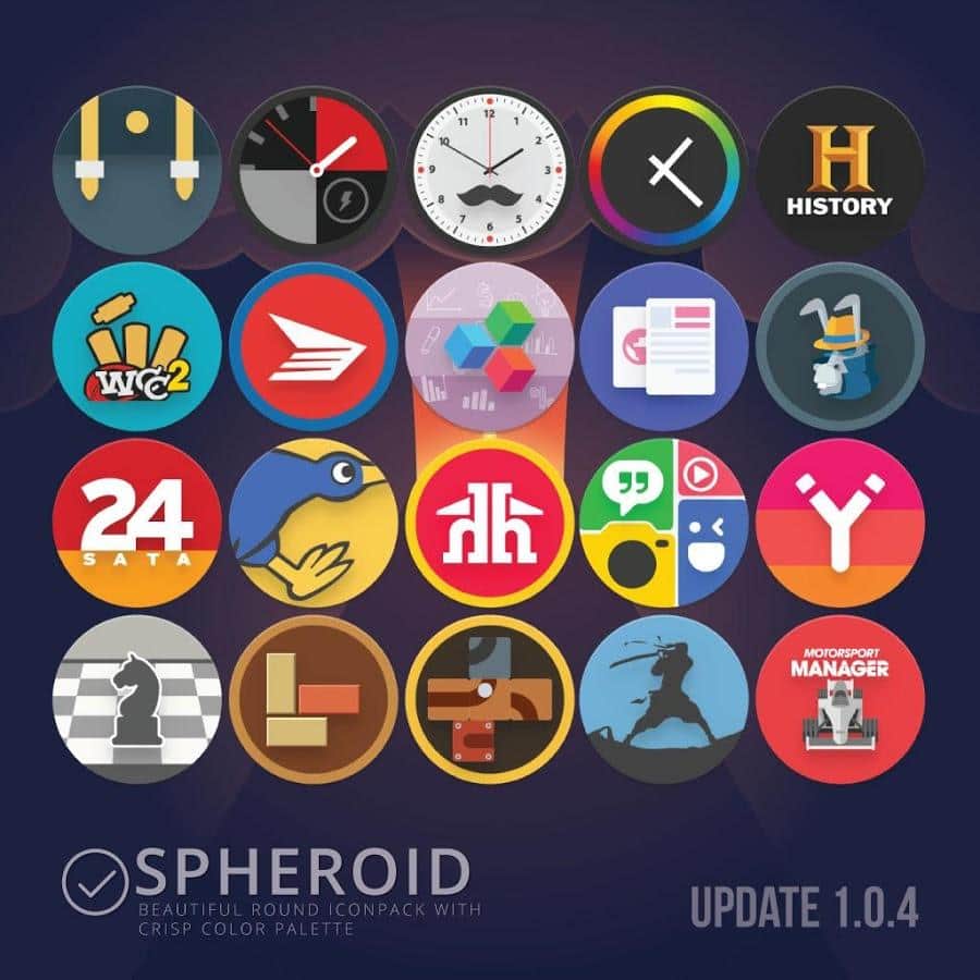 Spheroid - Icon-a Un conjunto de iconos único para tu escritorio. Más de 3800 iconos en alta resolución y con excelente calidad te están esperando aquí. Puedes reemplazar los iconos estándar con la instalación de un conjunto completo, o puedes colocar los iconos por separado para cada aplicación. Todo está en tus manos.