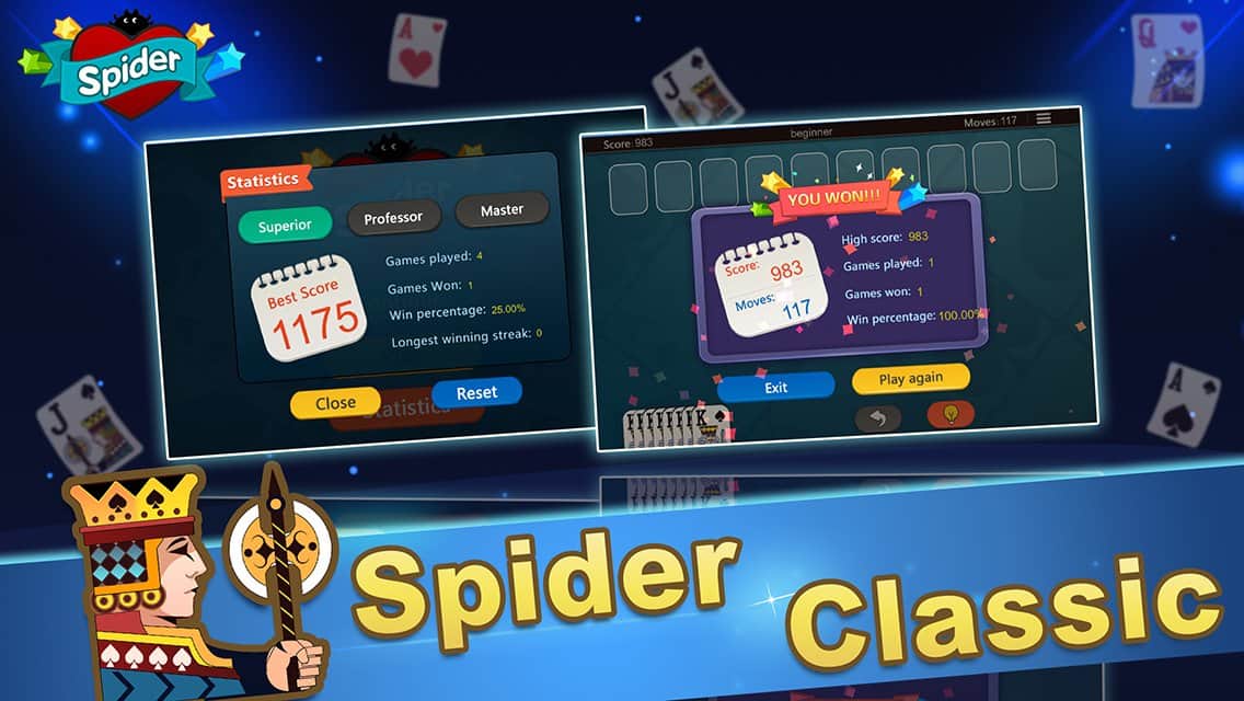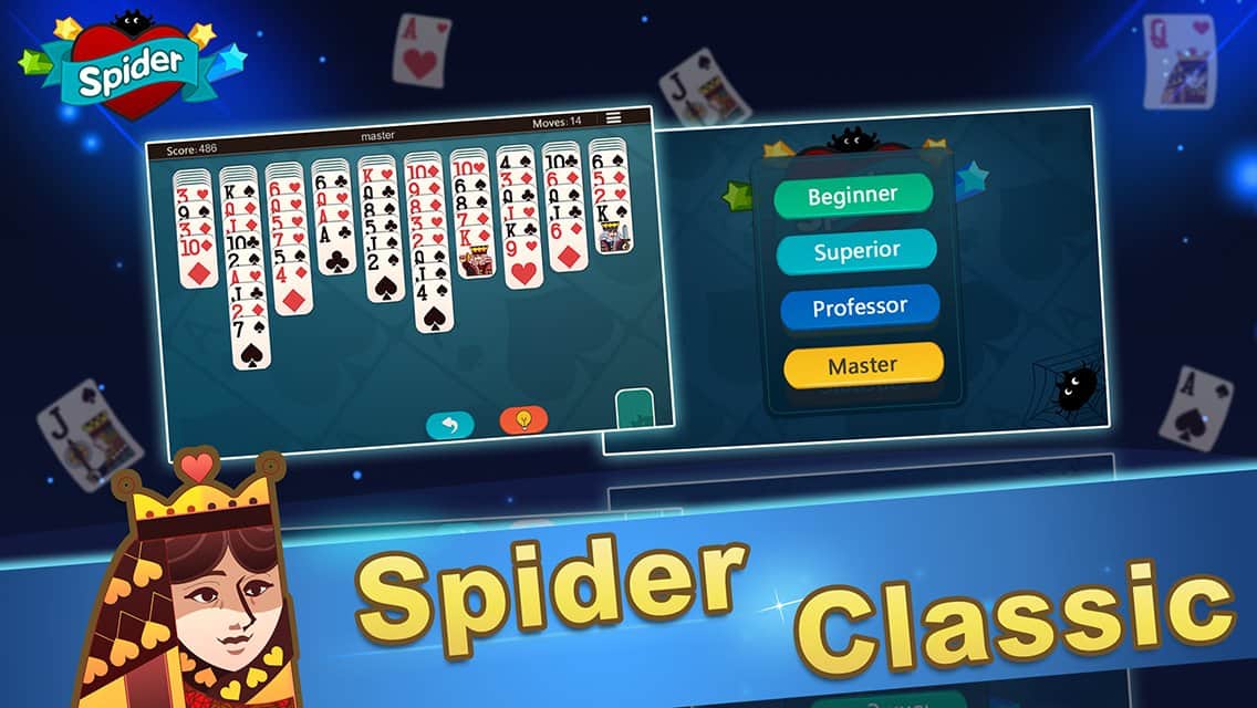 Las pantallas de los teléfonos no son impresionantes por su tamaño, lo que a menudo hacía que el juego de cartas fuera aburrido y poco interesante. Pero en Spider Solitaire – Juego de Cartas, el problema está solucionado, ahora las cartas son de tamaño estándar y se puede disfrutar cómodamente de tu juego de solitario favorito, sin importar su ubicación. El juego clásico no ha perdido su popularidad, así que junto con un juego brillante y adictivo, todos sentirán la atmósfera de los juegos de mesa en la tableta misma. ¡Establece nuevos récords y disfruta del proceso!