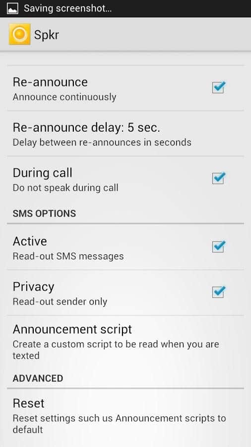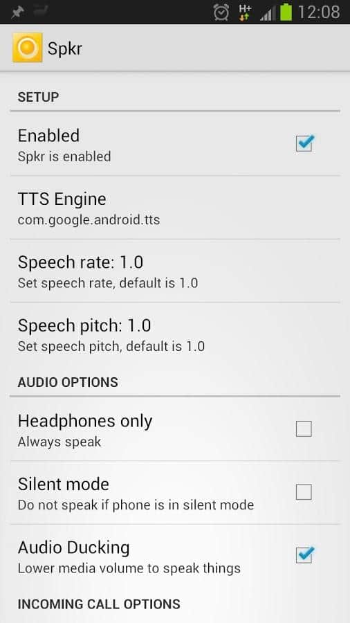 Comentarios a SPKR Speaker for calls and SMS en Android