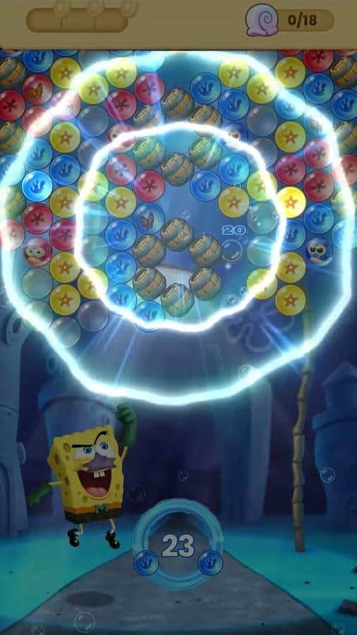 En el juego Bob Esponja: Explosión de Burbujas NETFLIX, los jugadores pueden unirse a una misión para reventar burbujas causadas por el malvado Holandés Errante. En esta colorida aventura, los jugadores pasarán por cientos de niveles con desafíos temáticos, donde deben hacer coincidir colores para reventar burbujas, liberar caracoles marinos y restaurar la paz en el mundo submarino. Cada nivel será una nueva prueba para tus habilidades y estrategia. Para mejorar sus habilidades de reventar burbujas, los jugadores pueden coleccionar y equipar varios trajes de Bob Esponja, cada uno de los cuales proporciona ventajas y mejoras únicas. Además, los jugadores pueden utilizar potenciadores como explosivos para hacer que su juego sea aún más efectivo.
