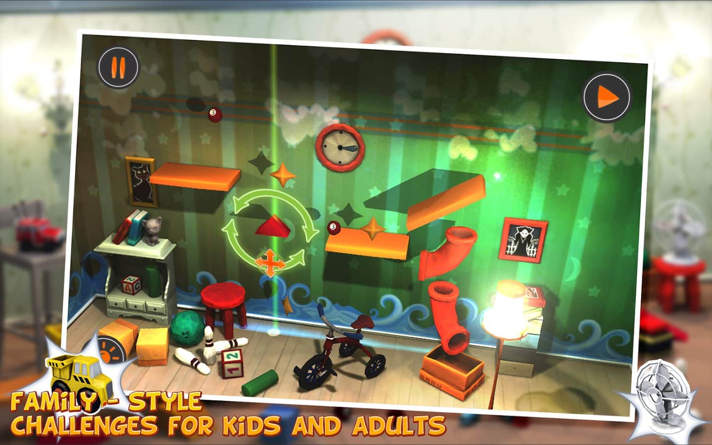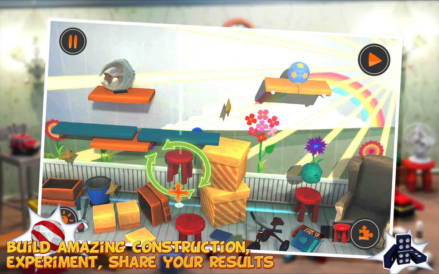 Spryciarz Desafío Enigmático – juego de rompecabezas basado en las leyes fundamentales de la física y la interacción entre objetos, el objetivo es crear mecanismos de "Rube Goldberg" para lograr una tarea específica. No siempre la implementación del plan es la primera. pero no te preocupes, la próxima vez aplicarás un método diferente de disposición de elementos para la finalización exitosa del experimento. En el juego se te ofrecen aproximadamente 41 objetos interactivos, que interactuarán con otros sujetos y el nivel.