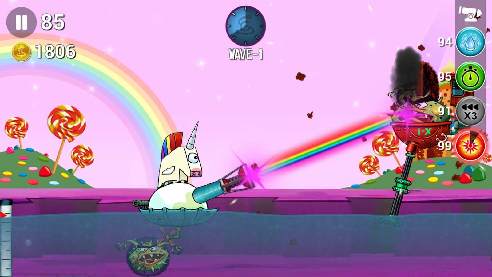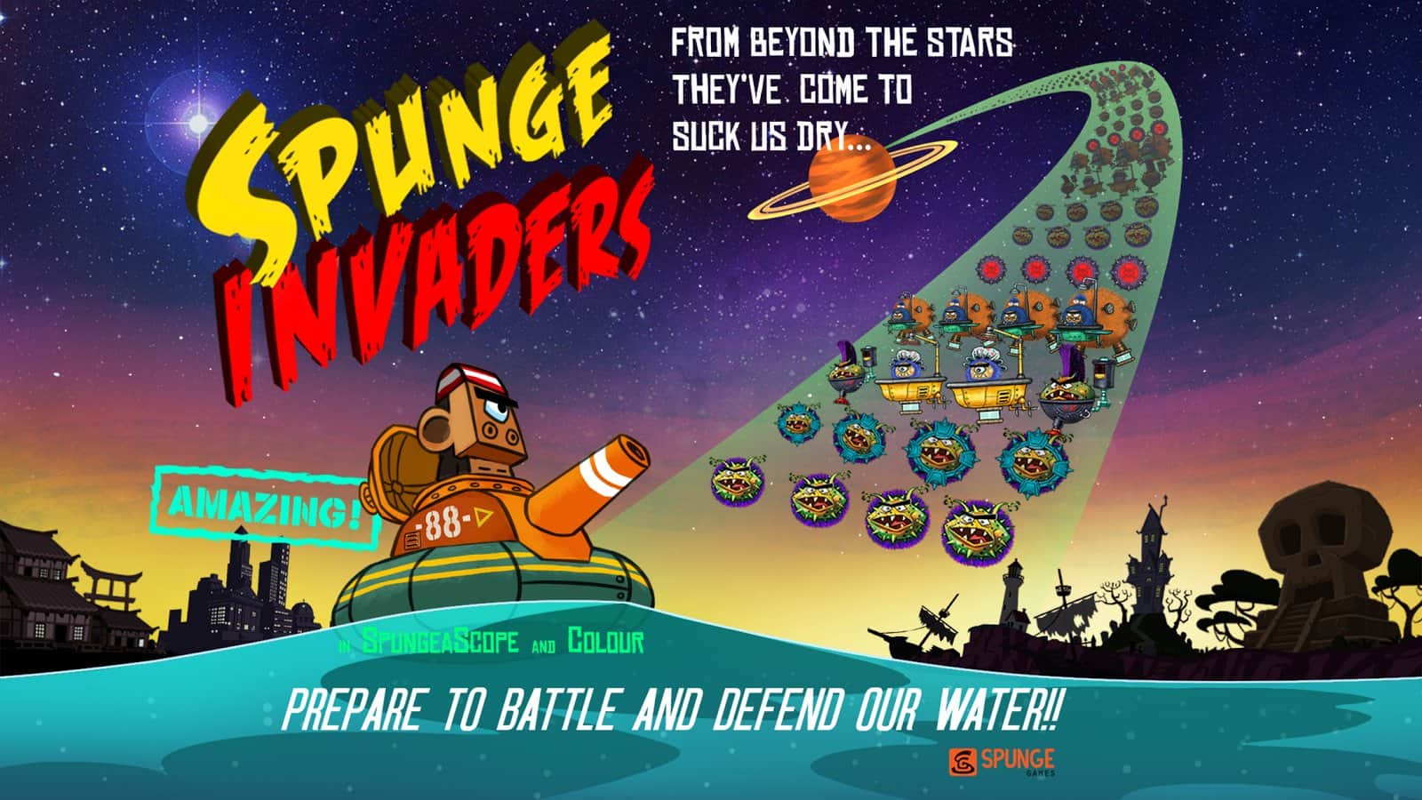 Invasores Spunge – protege tu planeta de la invasión alienígena en este emocionante juego para Android. Defiende la pistola flotante que puedes disparar en diferentes direcciones. Los alienígenas vinieron a nuestro planeta para robar toda el agua que hay en él. Tu tarea será controlar el arma y destruir a los alienígenas que se acercan al planeta, de lo contrario, tenderán a caer en el agua y recogerla. Dispara a los alienígenas que te atacan desde todos lados y trata de obtener suficientes puntos para desbloquear nuevos personajes. El juego cuenta con más de 14 personajes diferentes, un gran número de recién llegados y muchas ganancias y bonificaciones.
