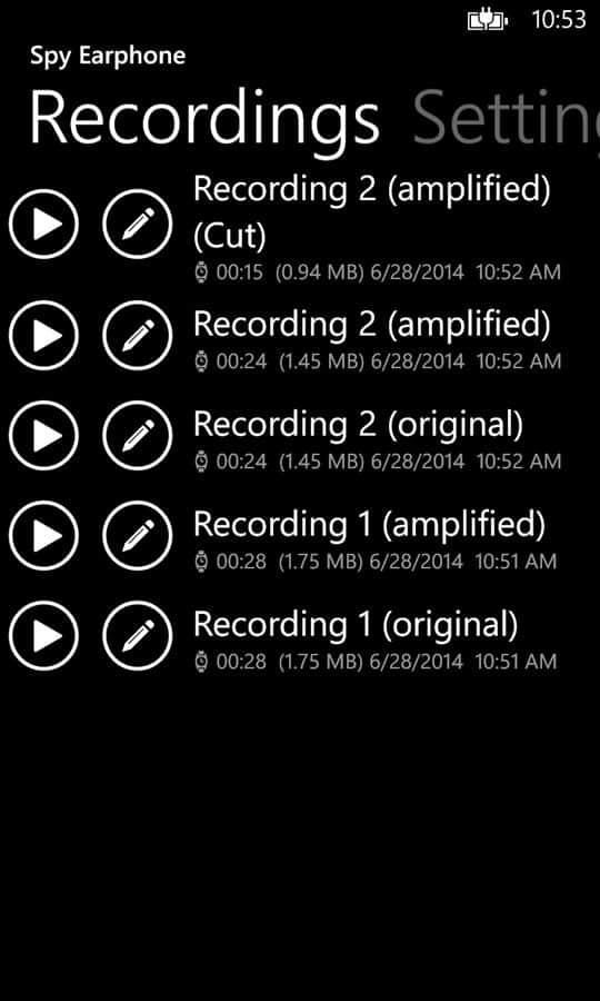 Spy Earphone es un gran programa para teléfonos Windows que puede convertir tu smartphone en un micrófono espía. ¡Solo conecta tus auriculares al conector y comienza a espiar amplificando el sonido hasta 1000 veces!