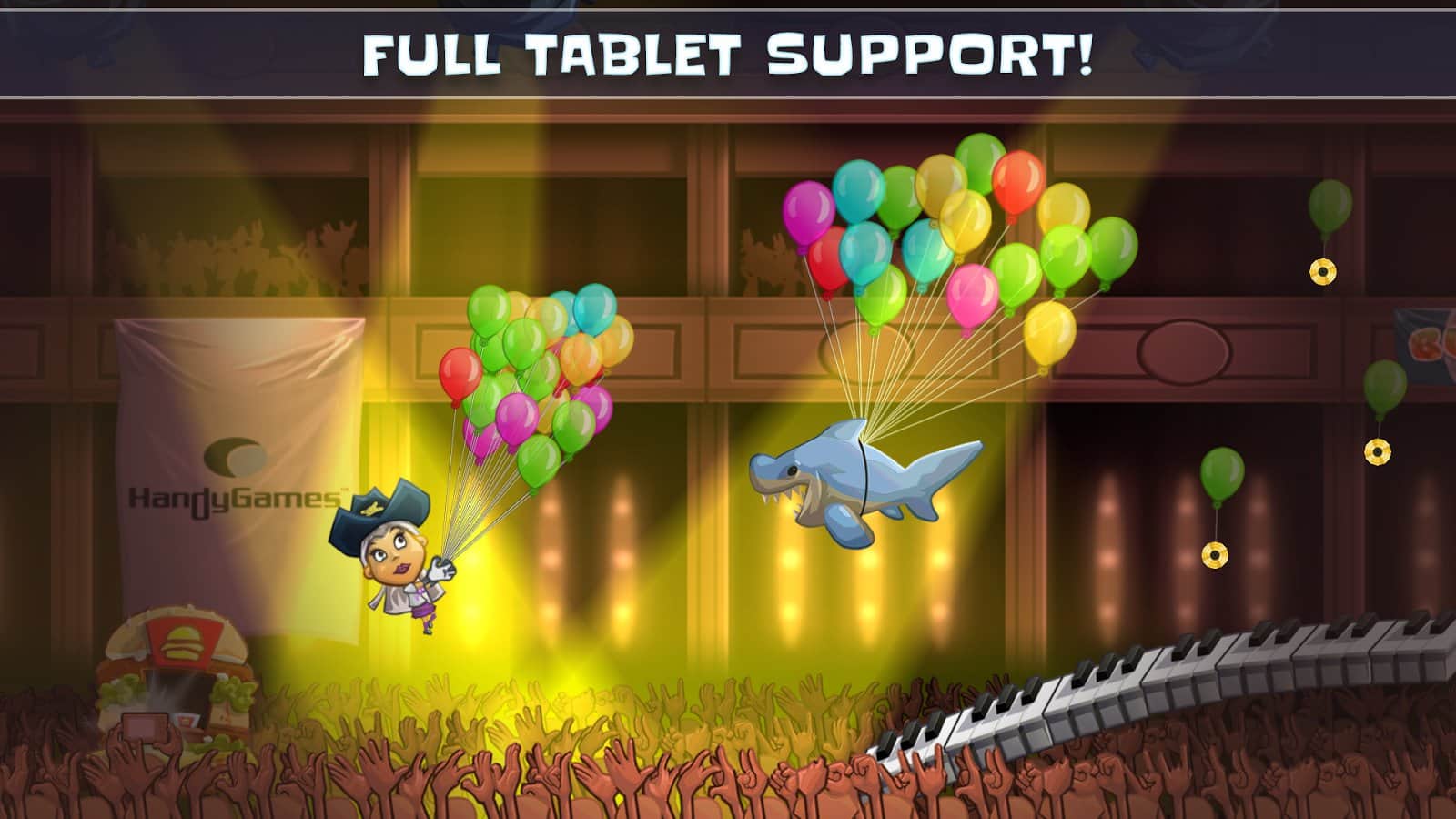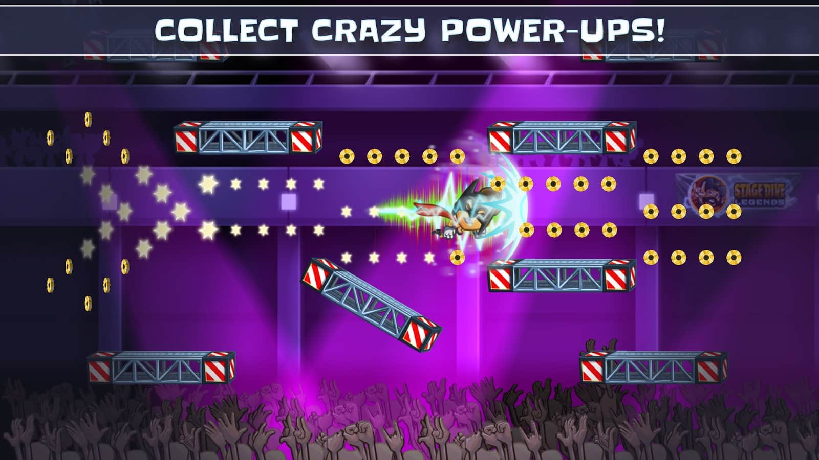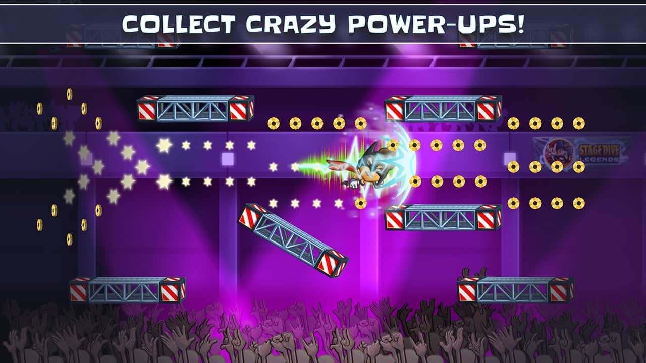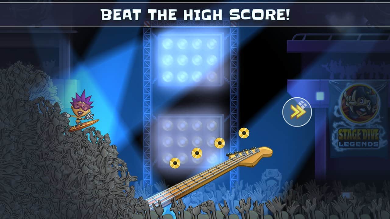 Stage Dive Legends - Emprende un magnífico tour a los lugares más hermosos del mundo. Ya sea que estés en Nueva York, Londres, Berlín o París, en todas partes encontrarás dónde disfrutar de tu concierto de rock. Únete a la diversión en esta épica saga sobre una estrella de rock y vive los eventos más legendarios en cada espectáculo de rock: el stage dive. Rompe tu guitarra, acelera y salta hacia la multitud. Corre por la sala de conciertos y siente el amor de tus fans. Realiza acrobacias locas, recoge momentos dorados y anima a la multitud reunida en el festival. Evita obstáculos voladores, como plátanos y hamburguesas a medio comer. Stage Dive Legends es un juego de corredor superrápido que aporta mucha alegría y diversión. No olvides mejorar a tu estrella de rock favorita y vencer a todos con la victoria. ¡Conviértete en una verdadera leyenda del stage dive!