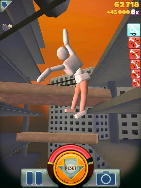 Stair Dismount – el juego original para IOS, con física realista. En este juego tu tarea será hacer caer al maniquí de las escaleras y golpearlo en la caída para causar tanto daño como sea posible. Cambia la dirección y la fuerza del empuje del maniquí y observa cómo rueda por las escaleras. El punto en el que se lastime en la caída se destacará en rojo, cuanto más se lastime, más puntos obtendrás. Cada nuevo nivel del juego te dará nuevas pruebas y escaleras. Envía al maniquí volando y no olvides adjuntar a su persona una fotografía de cualquier persona. Juega este juego y disfruta de una jugabilidad emocionante y una excelente física.