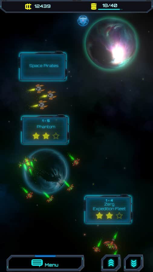 Star Brawl - Humanos vs Zerg – estrategia en Android donde lucharás contra numerosos enemigos. Toma el control de un acorazado y pilotéalo a través de una serie de batallas y épicas luchas con enemigos. Revisa todos los modos de juego, incluyendo combate y modo infinito. Desarrolla una estrategia y utiliza todas tus armas y naves de guerra. En el juego encontrarás más de 20 naves diferentes, un método de control simple e intuitivo, y diversas habilidades tácticas. Desafía a poderosos jefes y destruye más de 40 niveles de naves.