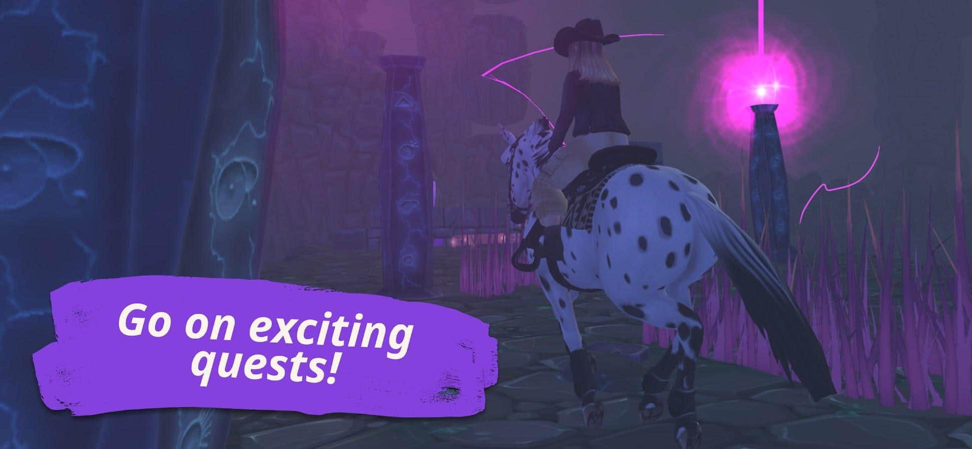 Star Stable Online - Bienvenido al mundo mágico de Jorvik, donde las aventuras, la amistad y la magia te esperan. Embárcate en un viaje montando tu propio caballo y conviértete en parte de una emocionante historia. Explora la isla, completa tareas emocionantes y entrena a tus fieles caballos. Haz nuevos amigos y crea tu propio club ecuestre. ¡Juntos pueden derrotar a cualquier fuerza oscura que amenace el mundo de Jorvik! Sé valiente, amable y estar listo para nuevas aventuras!