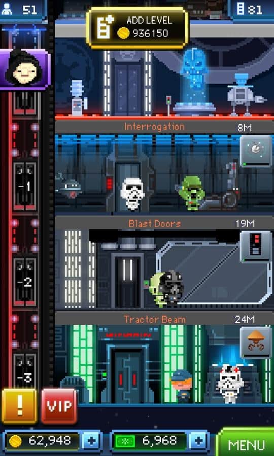 Star Wars: Tiny Death Star - un juego para Windows Phone, en el que jugarás con las fuerzas oscuras del mal y te unirás al Emperador Palpatine y Darth Vader para llevar a cabo su misión. Tendrás que construir la Estrella de la Muerte y desarrollar su infraestructura, así como contratar trabajadores bien conocidos de las películas de Star Wars. Desarrolla tu negocio, gana dinero y construye cada vez más nuevas Estrellas de la Muerte.