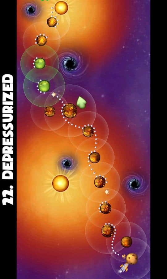 Starcrossed es un juego interesante en Windows Phone. Estás tratando de llegar a su planeta, abriéndote camino a través de meteoritos, usa tu lanzacohetes, salta a otro meteorito. Recoge monedas, intenta no quemarte en el sol y no caer en un agujero negro, usa la gravedad, y tarde o temprano regresarás a casa.