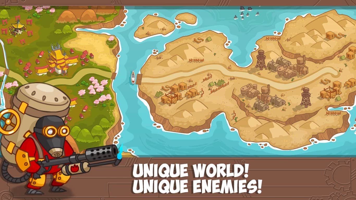 No es difícil adivinar por el nombre del juego Steampunk Defense Premium que es una estrategia táctica de defensa de torres, hecha en el estilo steampunk. La historia del juego es extremadamente simple, tu territorio fue atacado por invasores malvados e insidiosos y debes repeler oleadas de atacantes. La jugabilidad también está más enfocada en lo arcade que en una estrategia seria. Los desarrolladores han implementado buenos gráficos, muchas ubicaciones diferentes, y tiene lugar en las partes calurosas del planeta, por lo que tendrás que luchar en las junglas y desiertos, una rica selección de unidades, tanto de tu lado como del enemigo, múltiples modos de juego incluyendo multijugador. En otras palabras, ante nosotros se presenta un Tower Defense en un estilo entretenido.