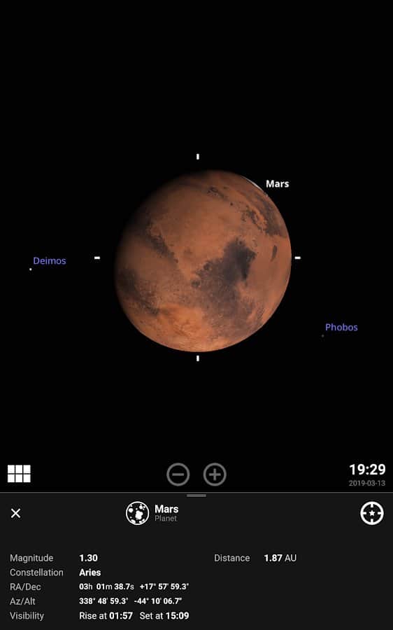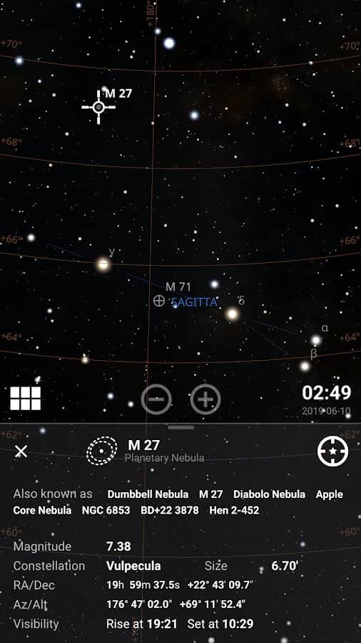 Stellarium Mobile PLUS - Mapa Estelar – una gran aplicación para Android donde obtienes un mapa astronómico del cielo de nueva generación. En la aplicación encontrarás una simulación realista y precisa del cielo nocturno con una gran cantidad de imágenes en línea y el catálogo de cuerpos celestes. Esta aplicación es desarrollada por el creador del famoso planetario de código abierto Stellarium. La versión PLUS fue creada para la demostración y el acceso abierto a la interfaz de un mapa astronómico del cielo.