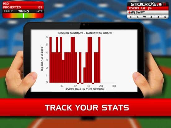 Stick Cricket – HD es un juego de carreras para IOS donde juegas al cricket. En este juego controlarás a un bateador que debe golpear la pelota con el bate y ganar puntos para su equipo. Comienza tu carrera en este juego y pasa de novato a maestro de su oficio. Viaja a diferentes países y participa en numerosos torneos tratando de llevar a su equipo a la victoria. De tu precisión y reacción depende el destino del equipo y su posibilidad de llegar a la final. Mejora las habilidades de tu personaje y logra resultados increíbles siguiendo tu progreso en el gráfico.