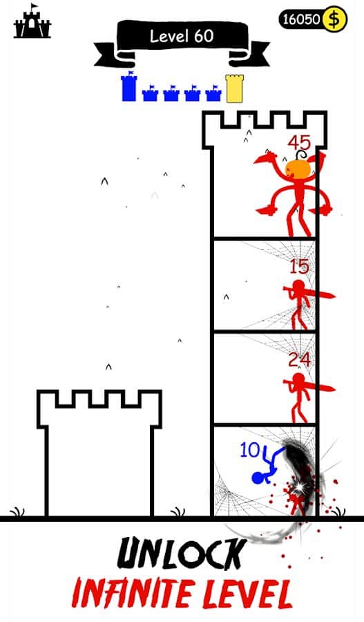 En Stick War: Hero Tower Defense, te encontrarás en el mundo de los stickmen, donde tendrás que defender tu torre de los enemigos utilizando tus habilidades de estrategia y táctica. Lucharás a través de un número infinito de niveles, donde cada nueva batalla se volverá más difícil y peligrosa. Necesitarás reunir a tu equipo de stickmen para luchar contra jefes espeluznantes y salvar a la princesa. Mejora el nivel de tus héroes, mejora sus habilidades y conviértelos en leyendas. Colecciona diversas armas y úsalas para derrotar a los enemigos.