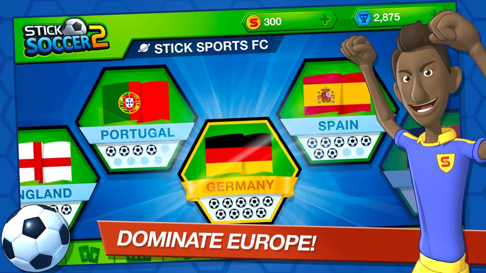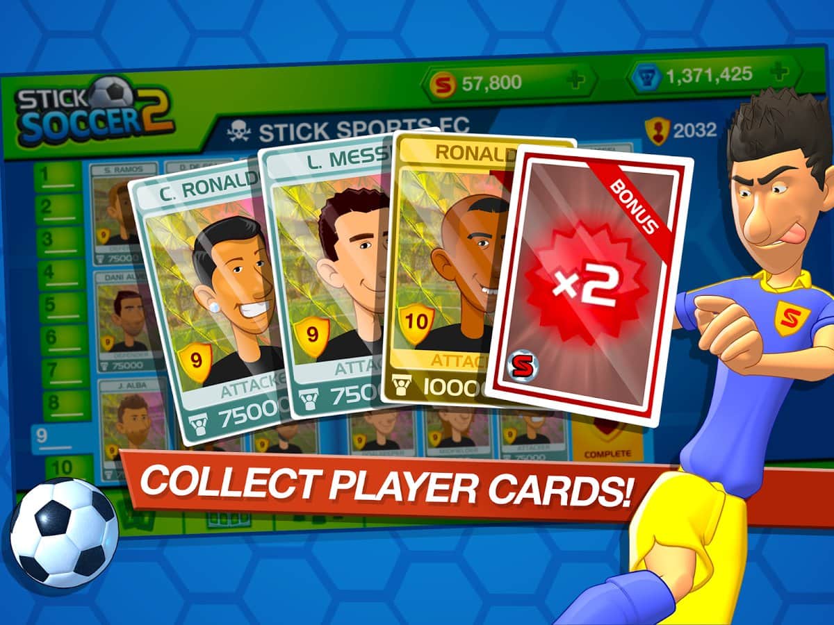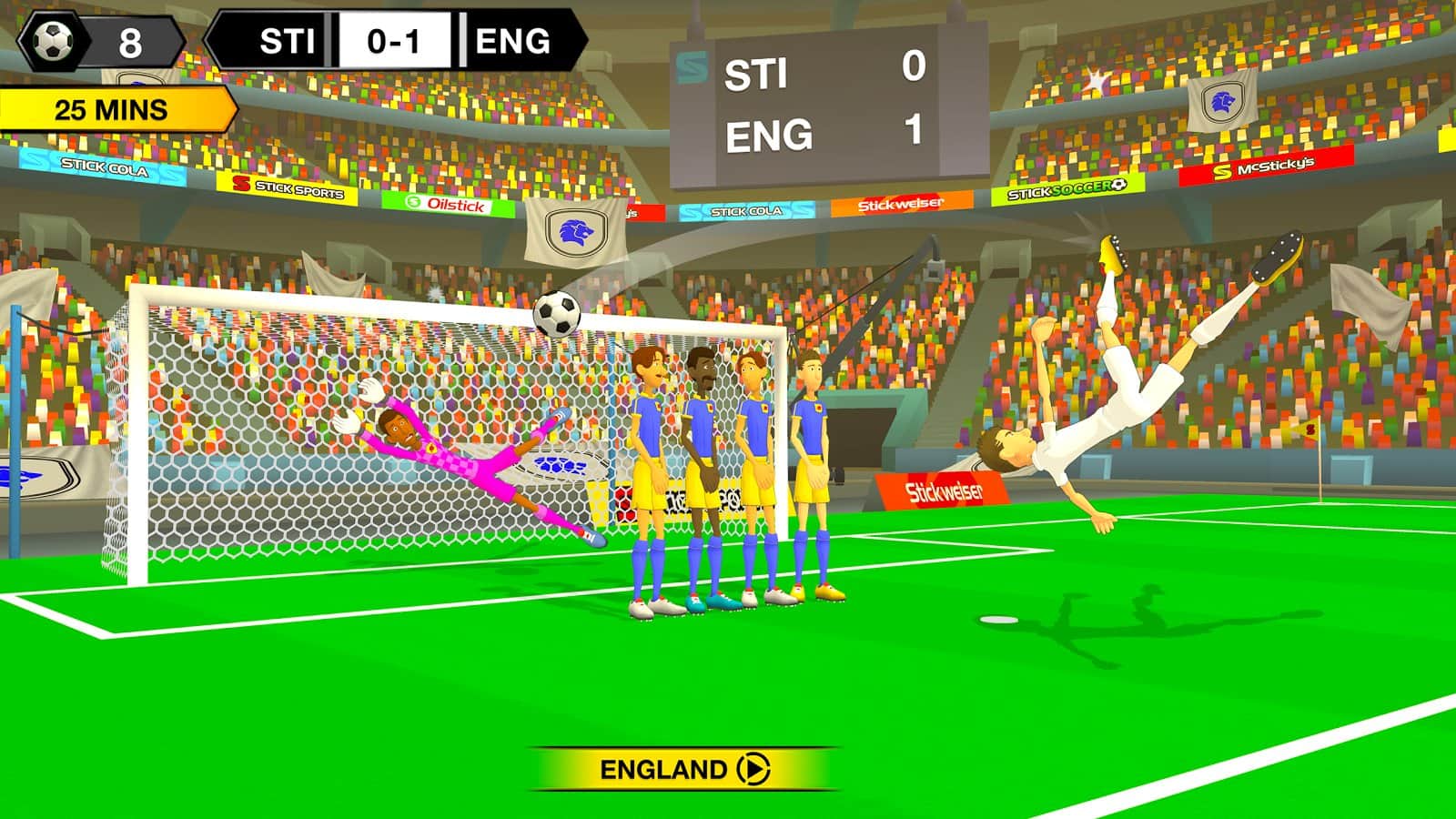 Stick Soccer 2 – toma el control de tu equipo de fútbol y llévalo a la victoria en el campeonato principal del mundo. Elige tu propio equipo de fútbol, eligiendo para él jugadores experimentados, una gran forma y el emblema del club. Gestiona tu propio equipo y entrena para trabajar en disparos precisos a puerta. Enriquece tu equipo con nuevos jugadores y colecciona todas las estrellas del fútbol. El juego te complacerá con controles simples y para marcar un gol en las puertas del enemigo, toca la pantalla del dispositivo y desliza calculando la trayectoria del tiro. Engaña al portero del equipo contrario.