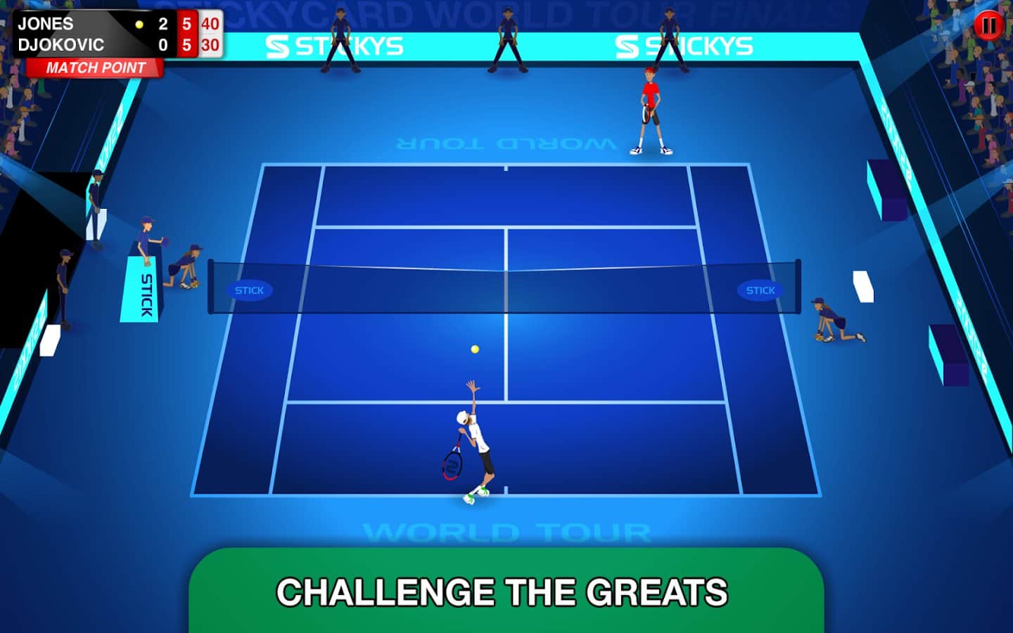 Stick Tennis Tour es un juego deportivo, donde podrás competir en la cancha con otros jugadores por el premio máximo del campeonato mundial de tenis. Participa en el torneo y selecciona un jugador adecuado que esté representado en este juego. Pasa por las 28 rondas y asciende a la cima en la tabla de clasificación. Mejora tus habilidades jugando contra una IA inteligente, derrotándola con facilidad. Desafía a los mejores jugadores en este juego y gana la copa principal del torneo. Este juego cuenta con más de 80 lugares únicos, 180 jugadores y una jugabilidad adictiva.